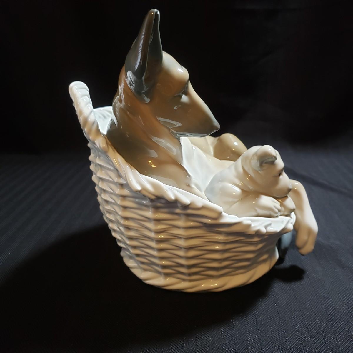 This porceline piece by Lladro is titled "German Shepard with Pup". This was made in Spain. The piece measures 8" x 7" x 8"H. It appears to be blemish free.