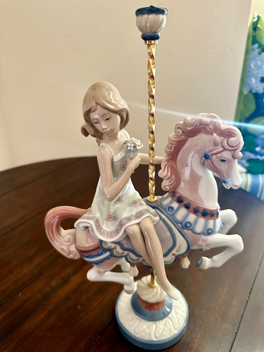 Lladro Girl #1469 Riding carousel Horse