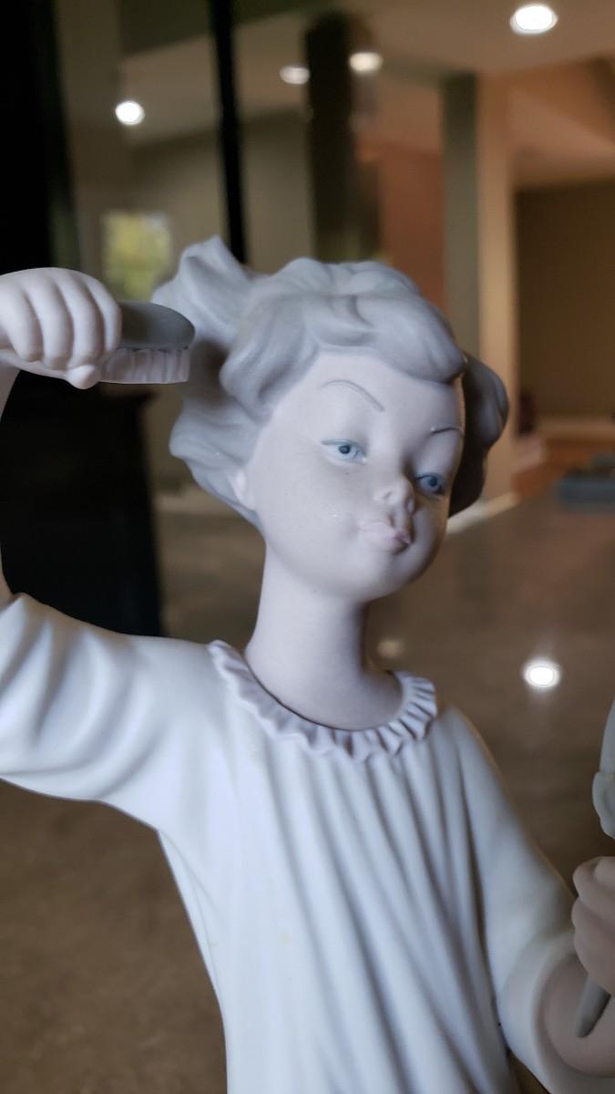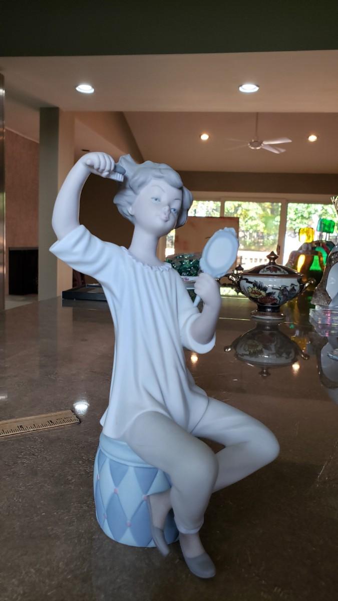 Lladro girl with brush and mirror matte finish