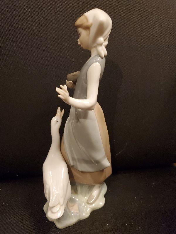 LLADRO (#15)  Figurine Porcelain Girl with Duck Approx. 9.5" x 4" made in Spain Girl Feeding Duck