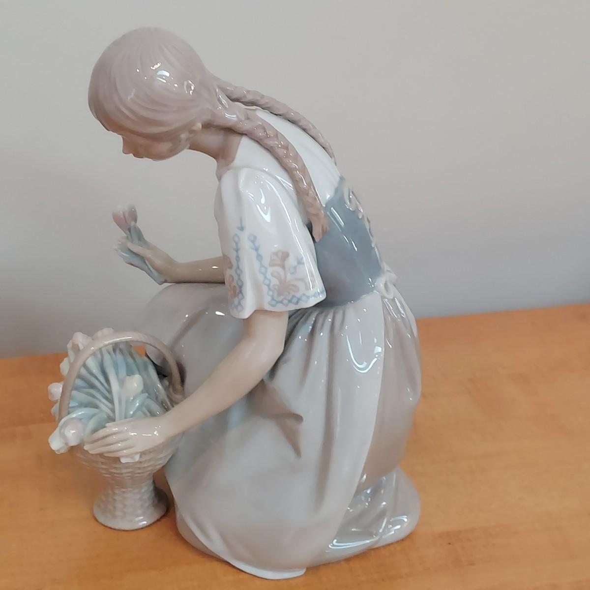 Large Lladro brand porcelain figurine named “Girl with Tulips” that measures 10"H. Please see photos for details. Shipping available