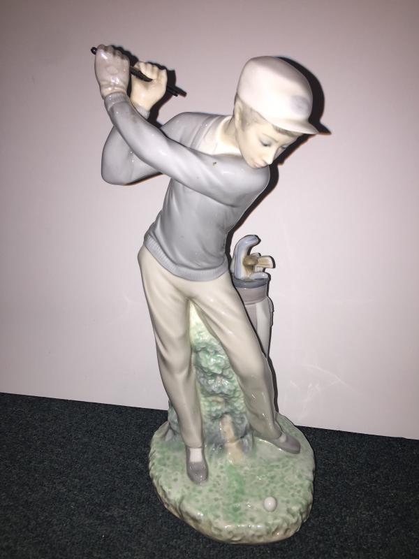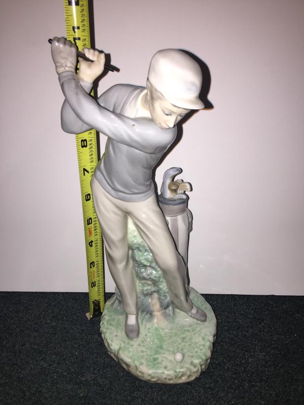 This is a Lladro golfer figure rain from Spain it is 11 inches tall and is listed as is due to the golf club he is swinging been broken off - I do not have the piece that is broken off - This item is being sold as is damaged