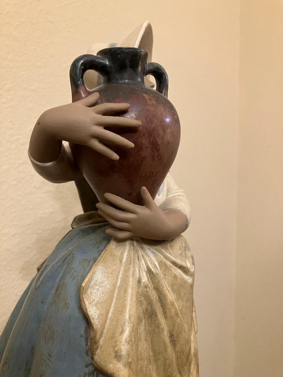 Lladro figurine featuring "In search of water", measuring 15" H. All fingers are intact.