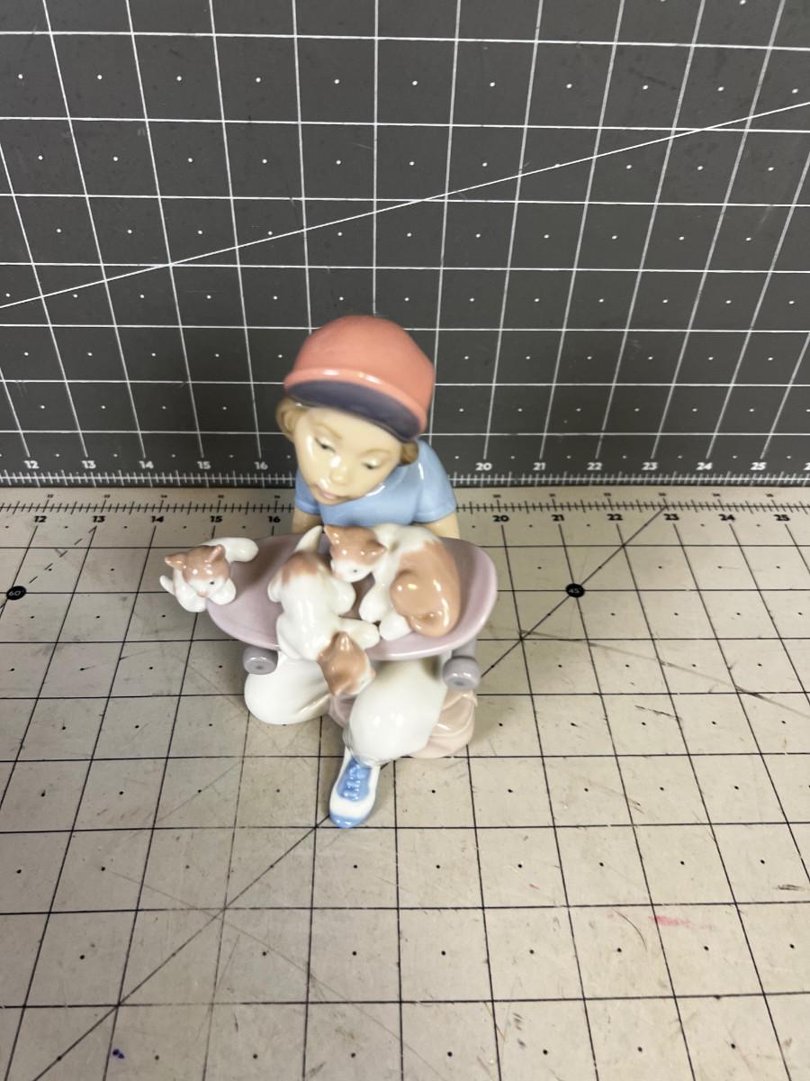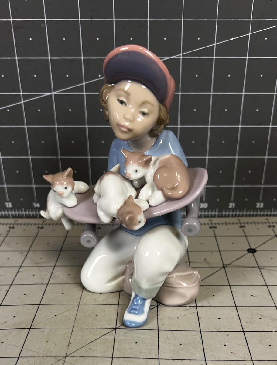 LLADRO Little Rider #7623 1994 Boy with Skateboard and Kittens