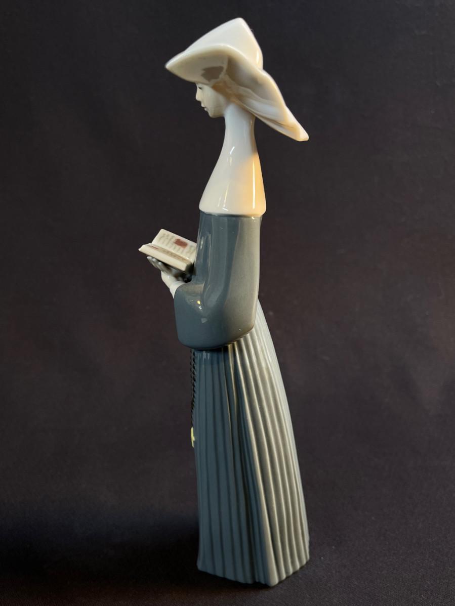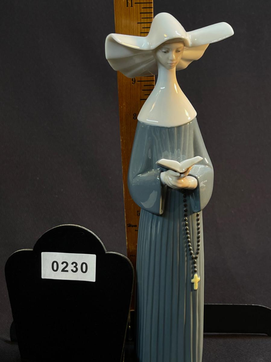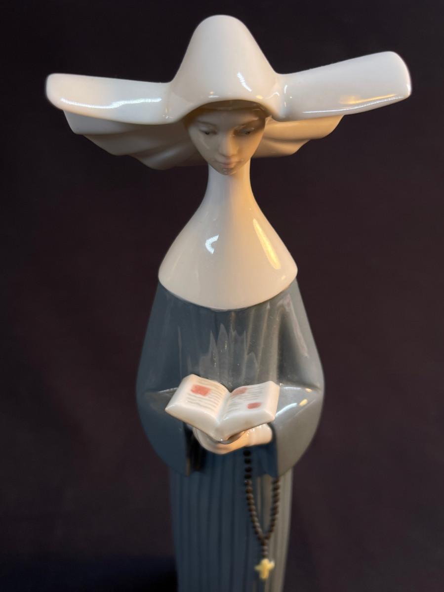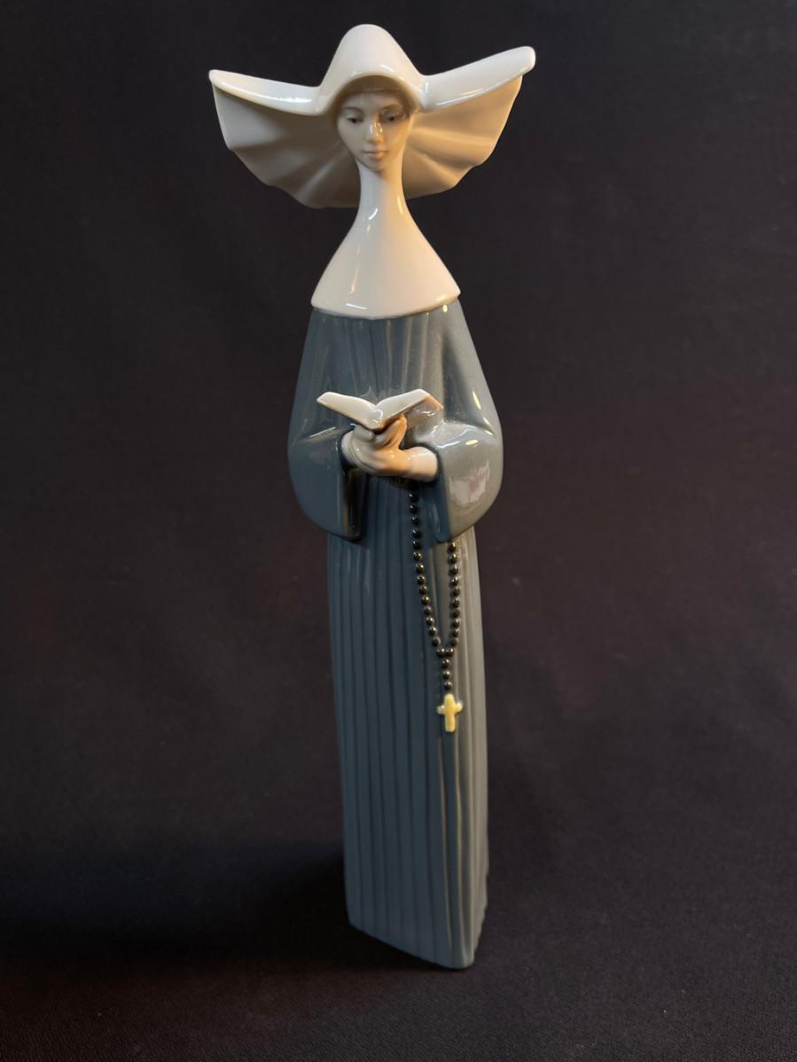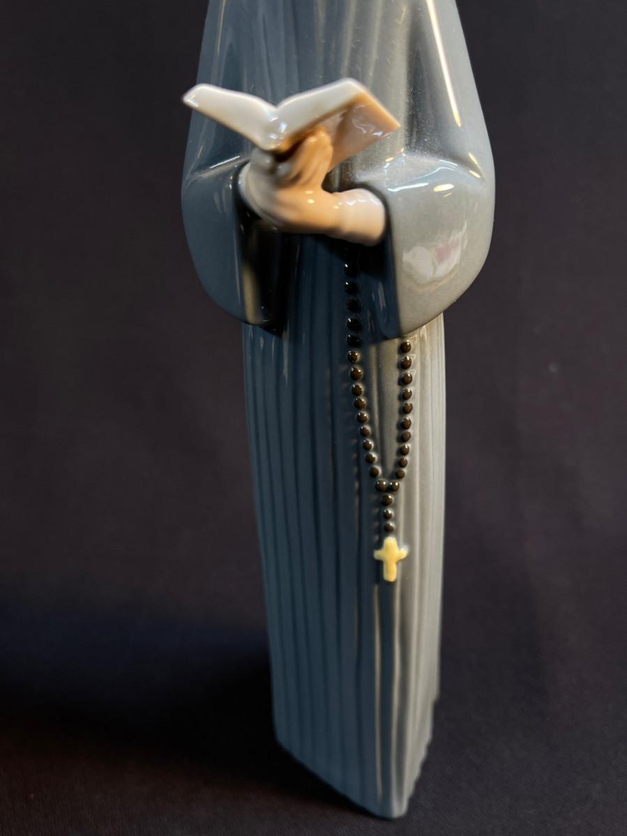 Lladro Prayerful Moment Porcelain Figurine #5500 with Rosary and Prayer Book. Tall blue nun. 10 1/2" T.