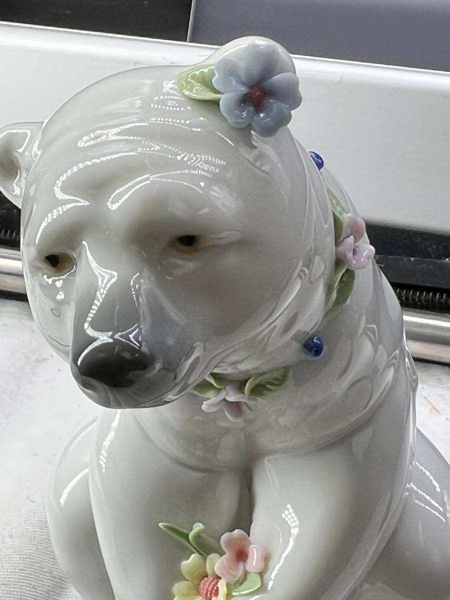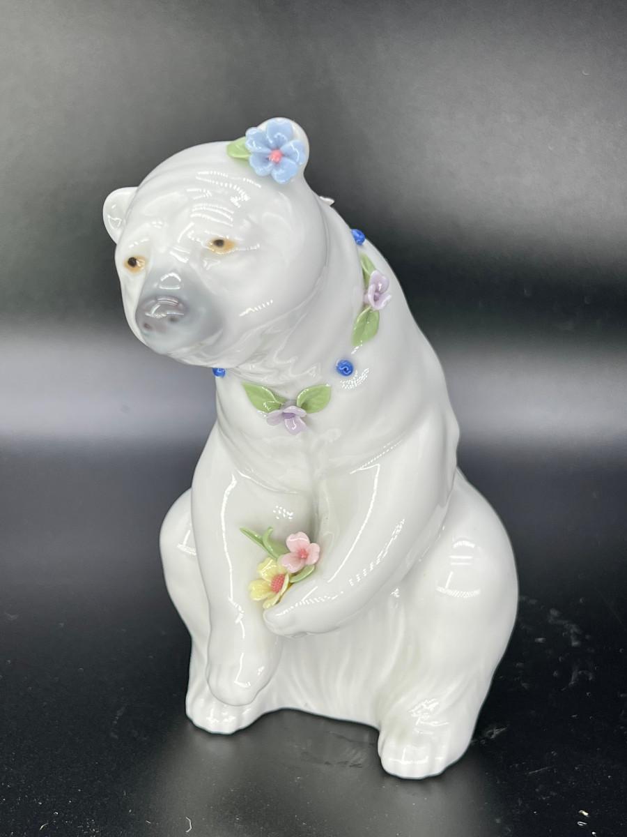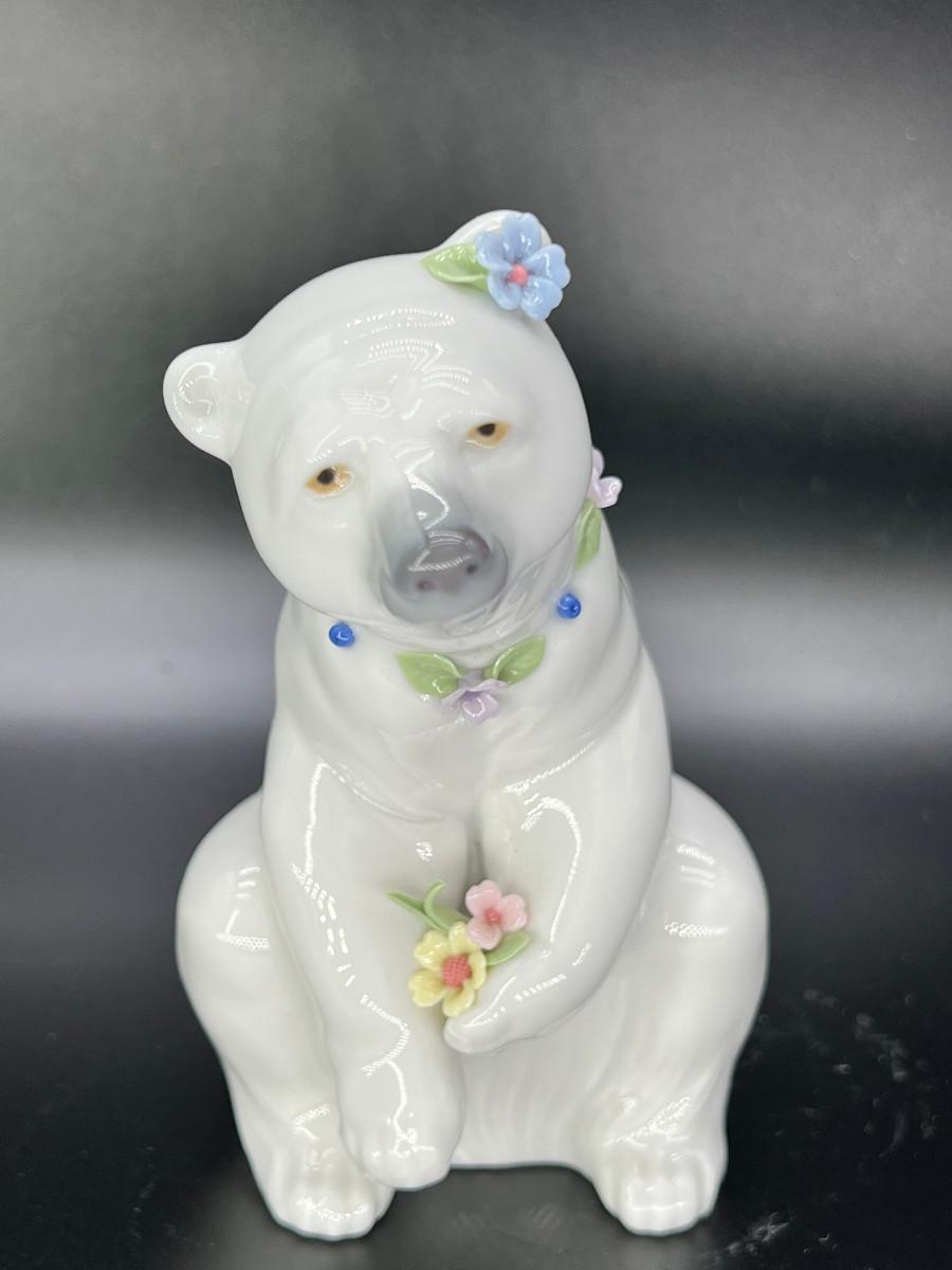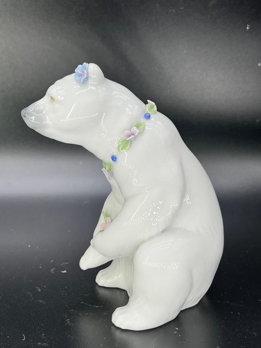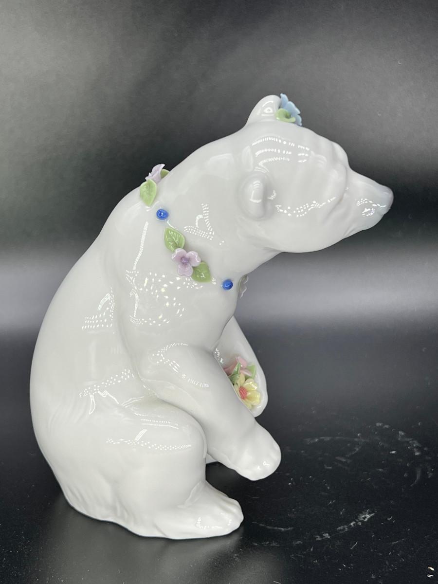 LLADRO 1997 Retired Figurine - POLAR BEAR Resting with Flowers 6355 - Juan Huerta