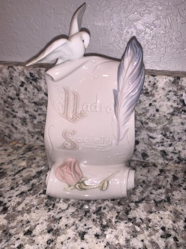 LLadro society scroll w/rose,feather and dove