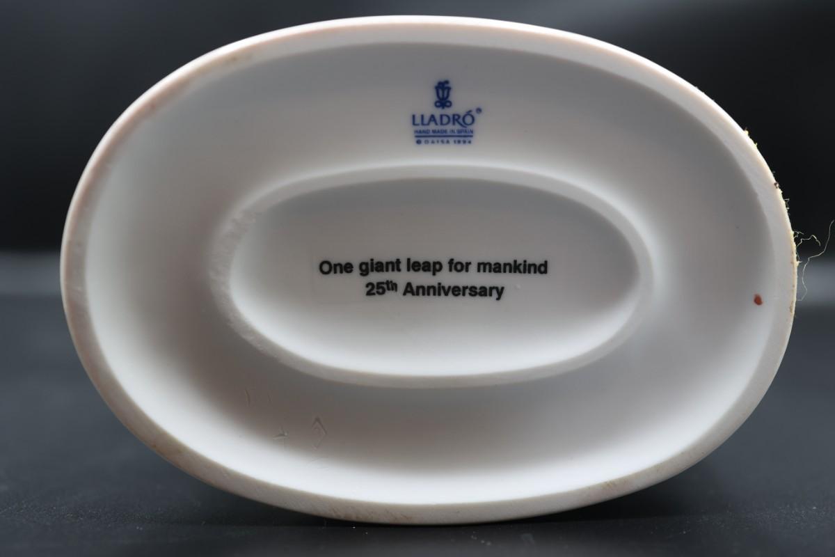 Porcelain sculpture titled "The Apollo Landing" by Lladró, commemorating the 25th anniversary of the Apollo 11 moon landing. Comes with certificate of authenticity and in Perfect condition.