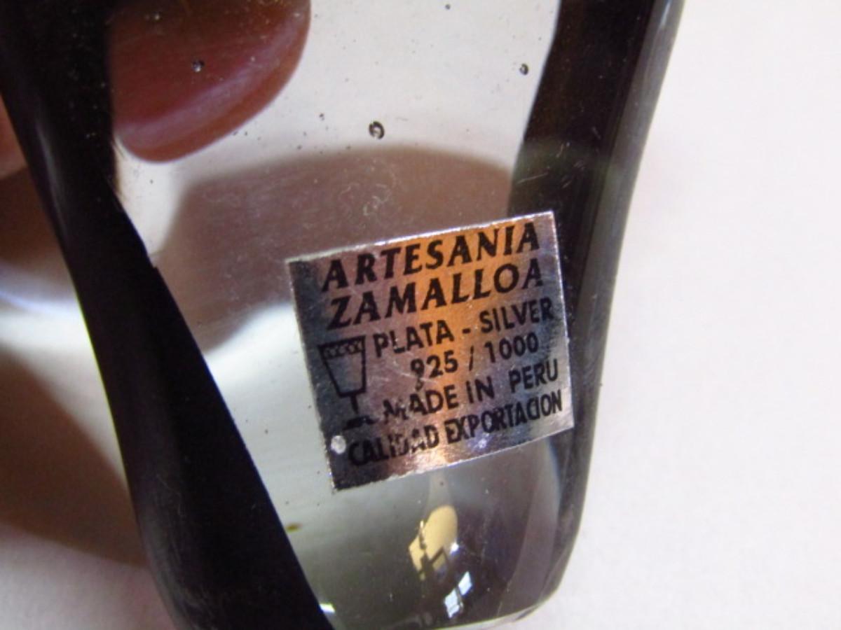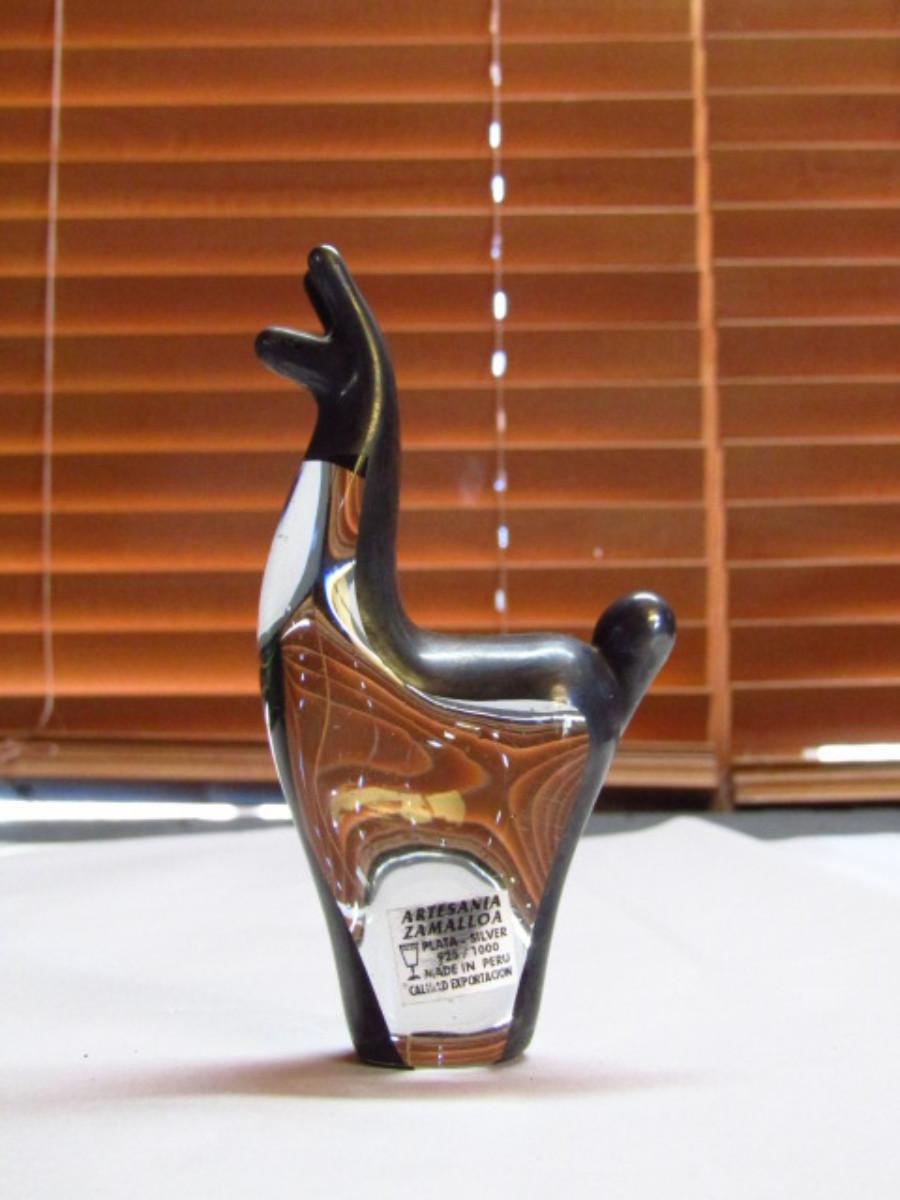 LLama Art Glass Figurine with Sterling Silver Overlay (G). Made in Peru by Artesania Zamalloa. Approx 4 1/2" tall.
