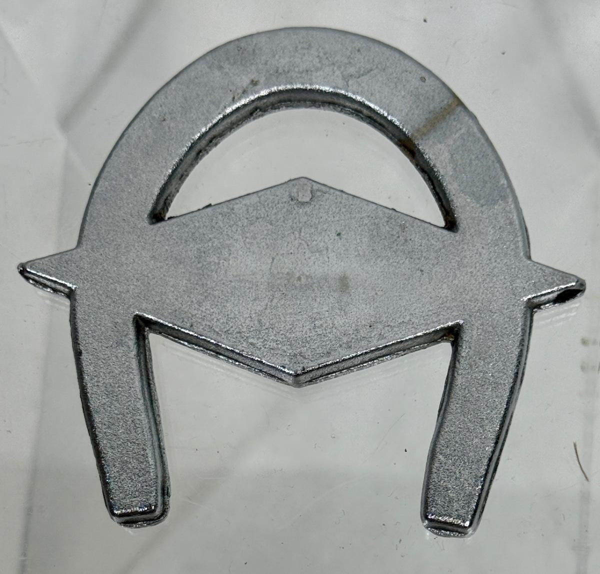 Polished silver tone metal paperweight. Good condition, approx. 3" long.