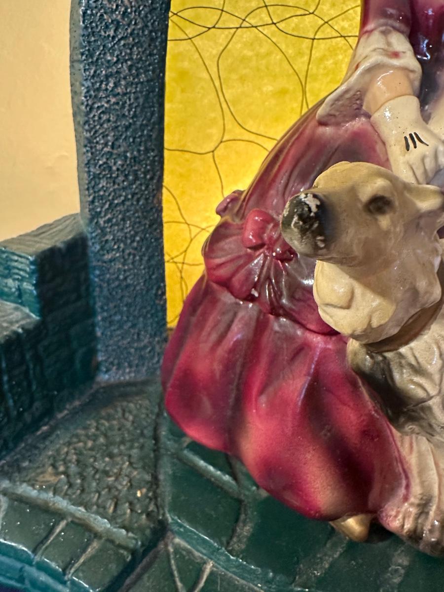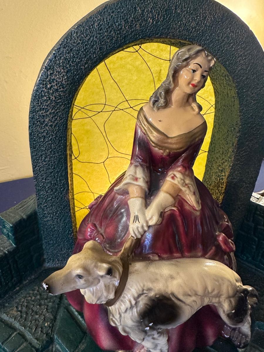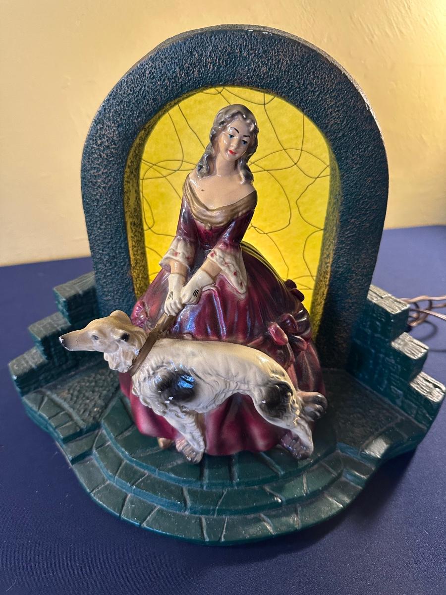 LM Fielack lady and dog chalkware tv lamp 11" TALL14" WIDE WORKING
