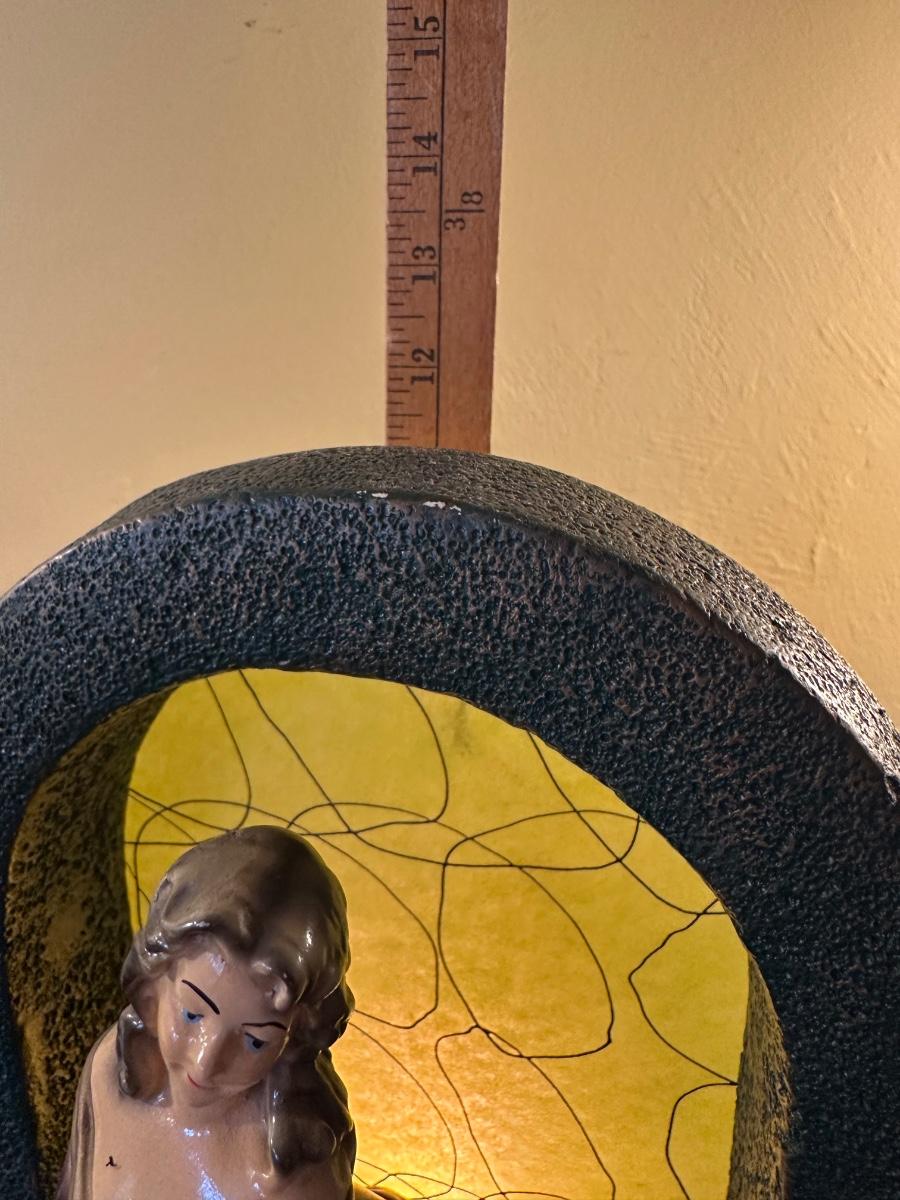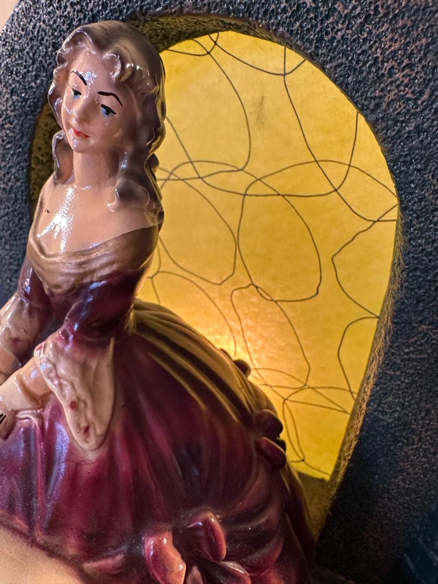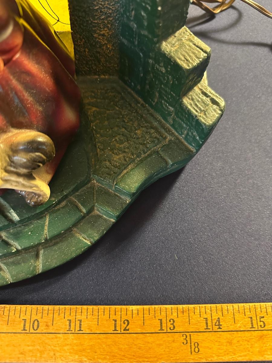 LM Fielack lady and dog chalkware tv lamp 11" TALL14" WIDE WORKING