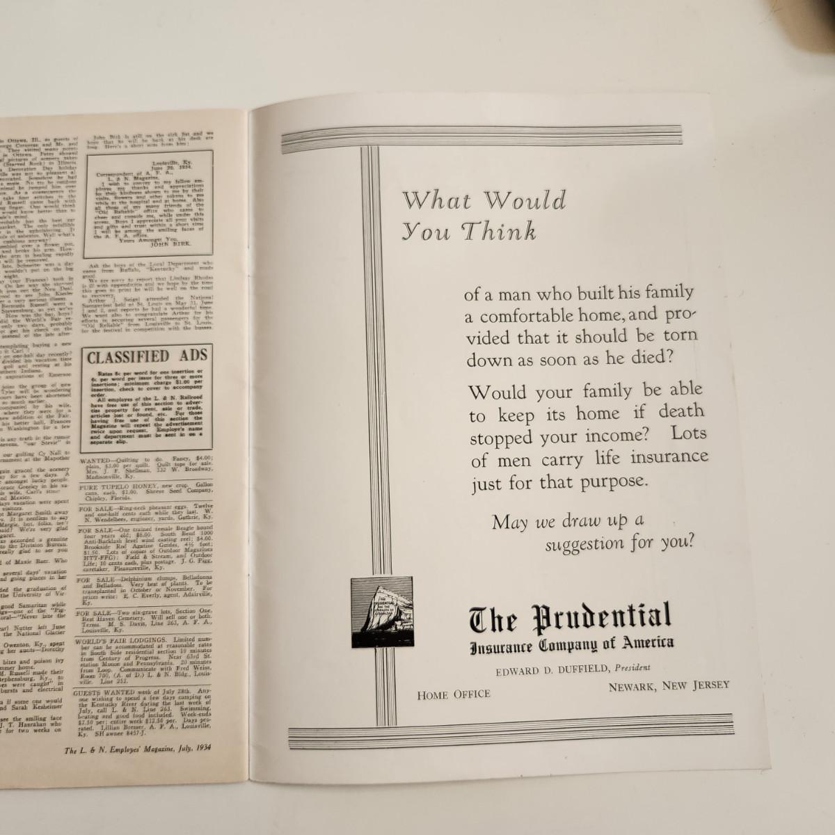 This auction lot is for a copy of the L&N Employee Magazine - July 1934. It appears to be in good condition for its age.