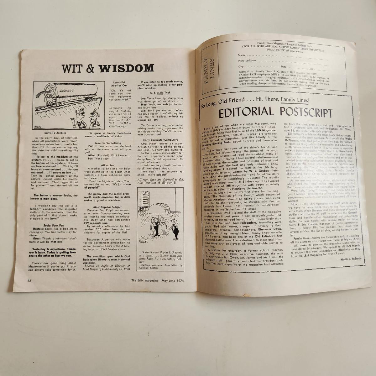 This auction lot is for a copy of the L&N Employee Magazine - May-June 1974. The magazine appears to be in good condition for its age. This is the Farewell Edition - No. 578.