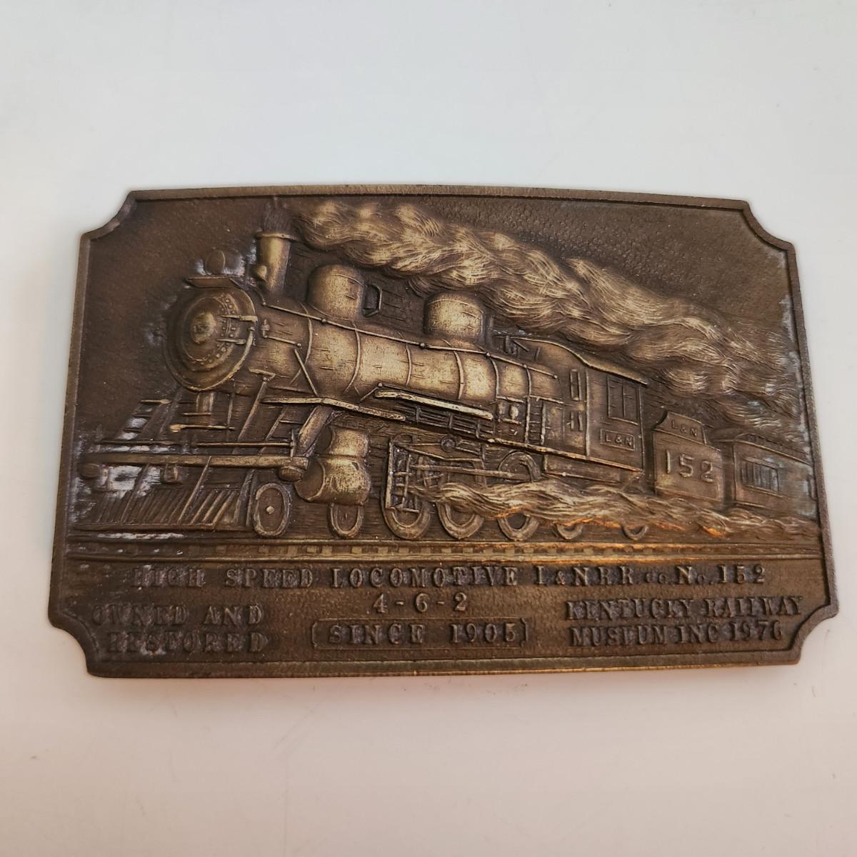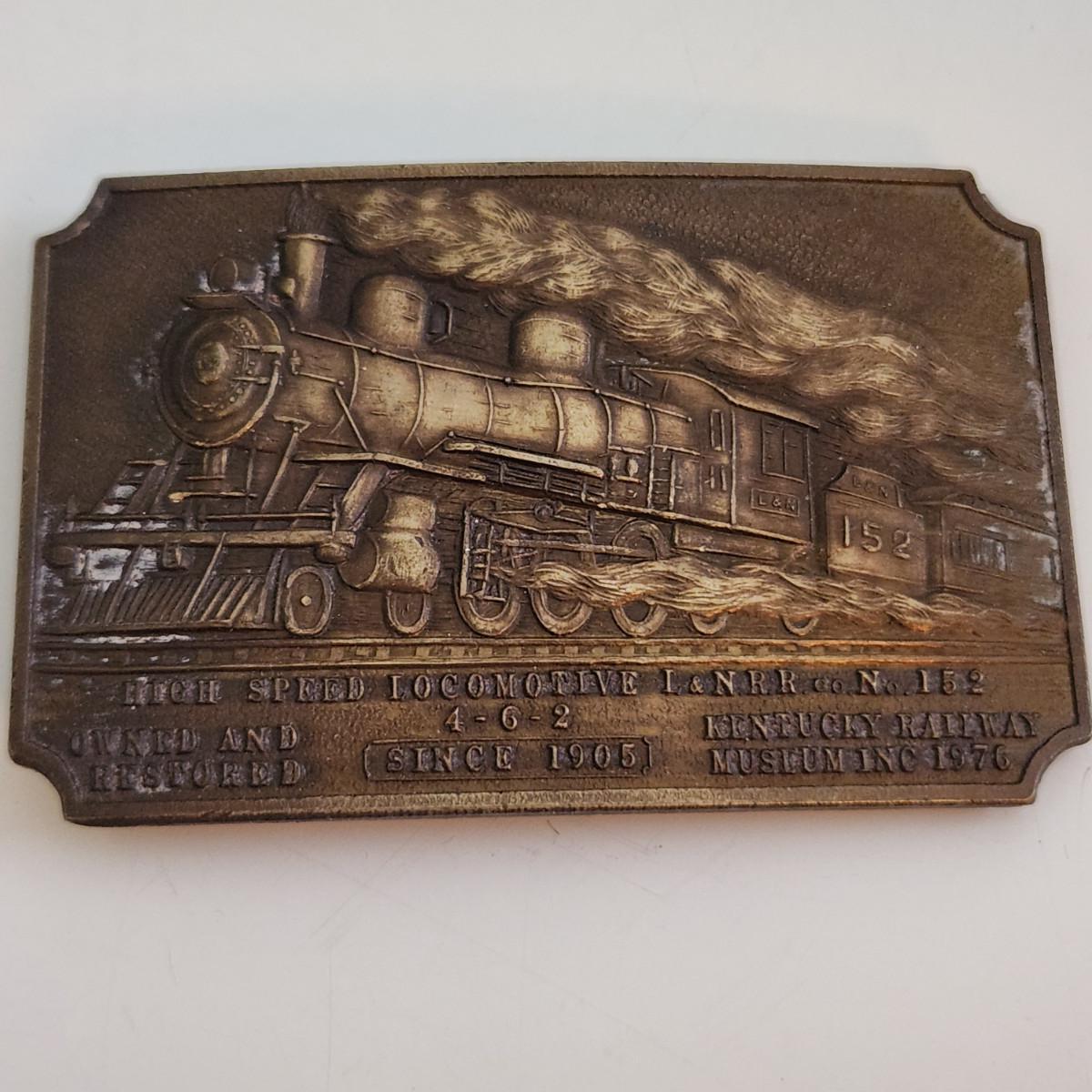 This auction lot is for a L&N Locomotive #152 Belt Buckle. This heavy-duty buckle is quite the memento of a bygone era. This locomotive was one of the last great steam engines. You can see the real thing at the museum in New Haven, KY.