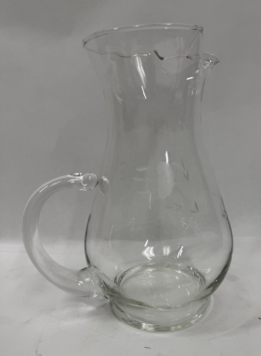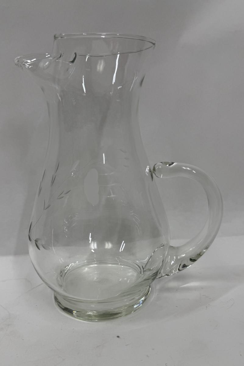Large solid glass handle, nice frosted flower etching. Perfect condition.