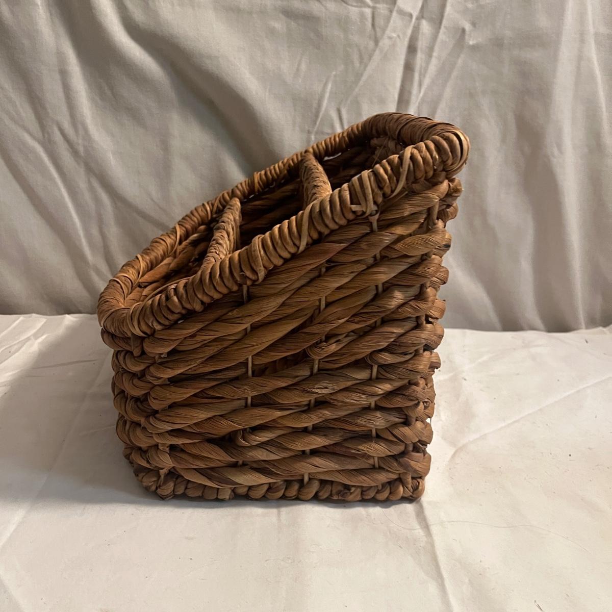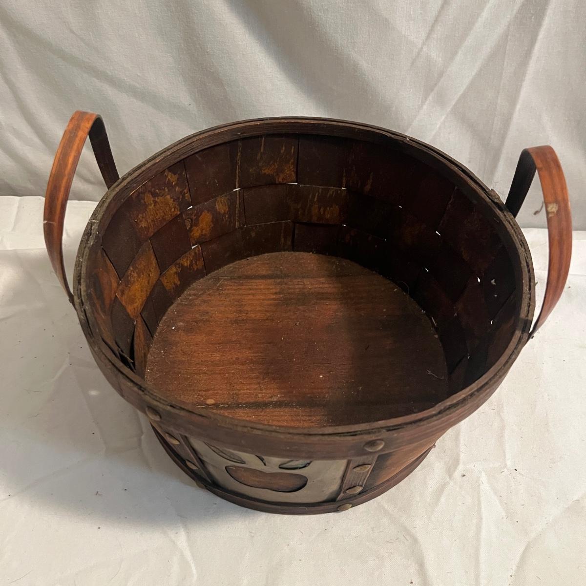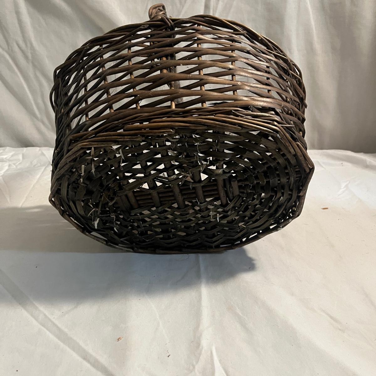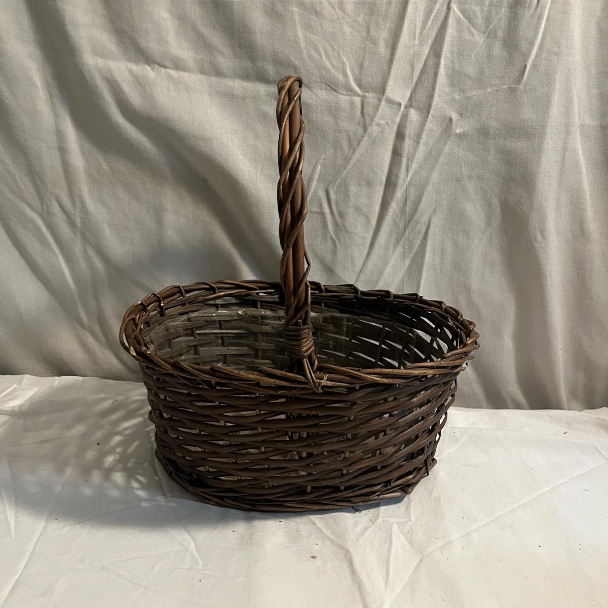 Lot contains a large selection, including two rolling baskets, Peterboro wood basket rack, four lined baskets and more basket in a variety of styles and sizes. Largest wheeled basket measures 15.5” x 18” x 16..5”H.