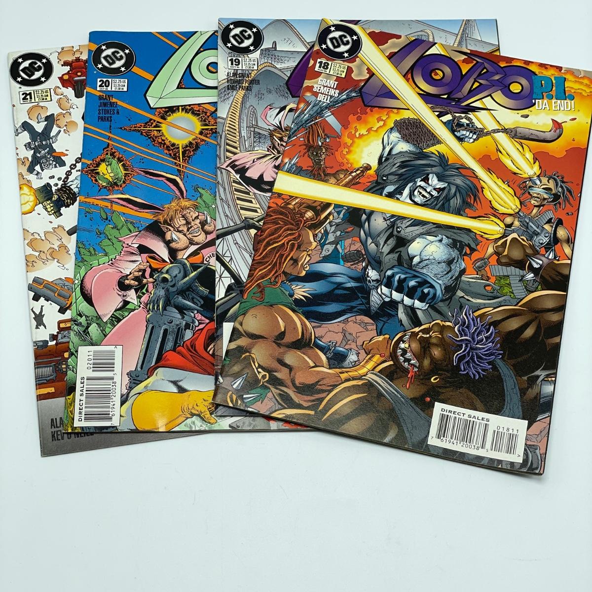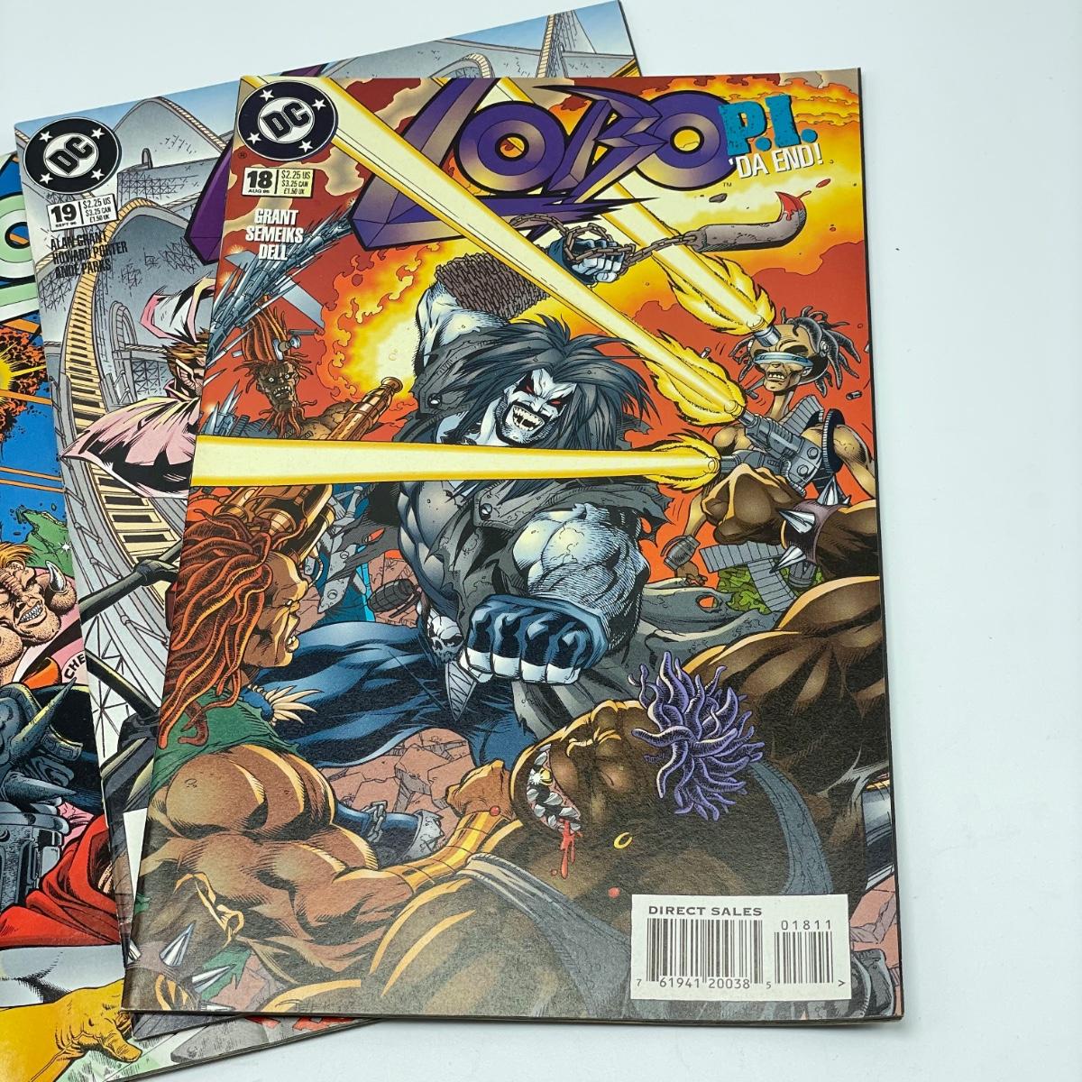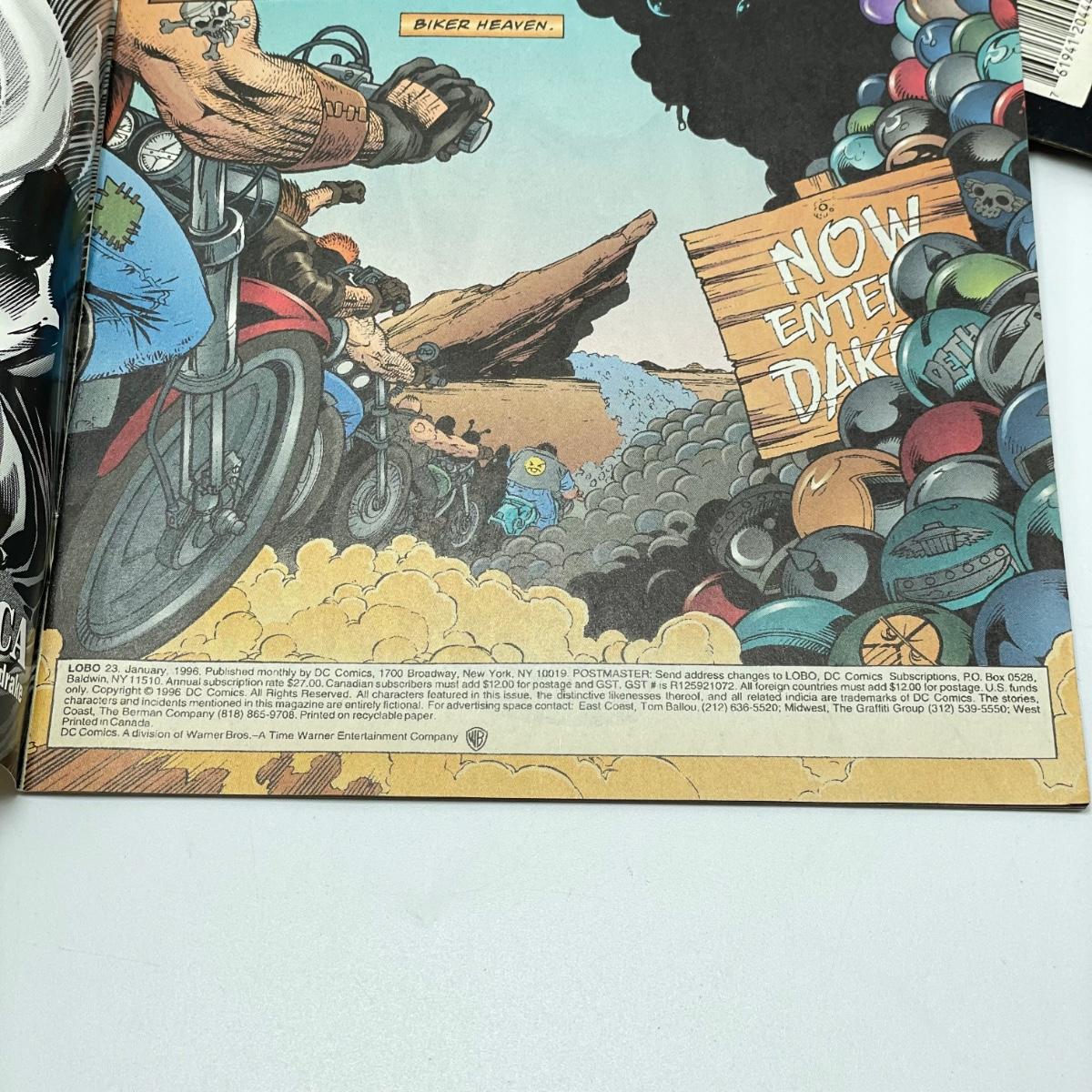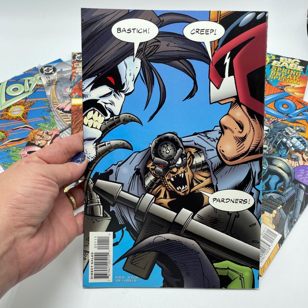 1995 book Lobo/Judge Dredd Psycho-Biker vs. The Mutant From Hell. Issues 18-21 from 1995 and issue 23 from 1996. Lot also includes 1994’s #2, #4, #6, Lobo’s Big Babe Spring Break Special and The Lobo Gallery, Portraits of a Bastich. See images. Items are sold as-is. No returns or refunds. Please bid accordingly.