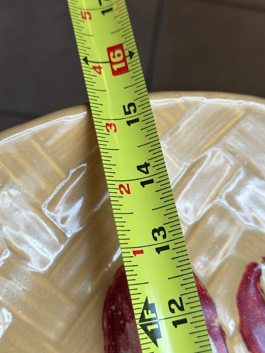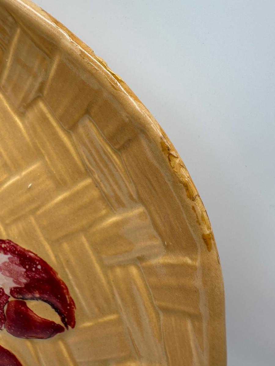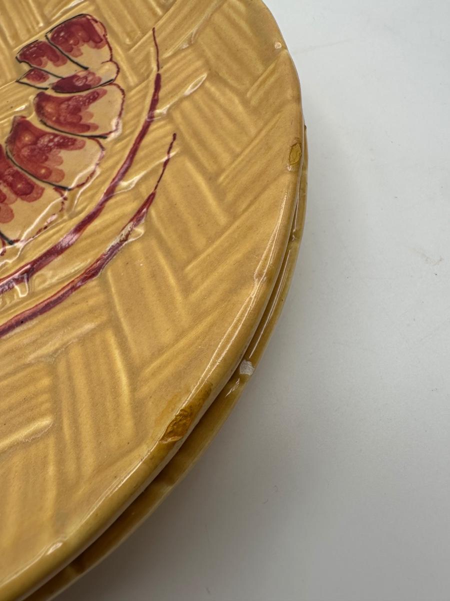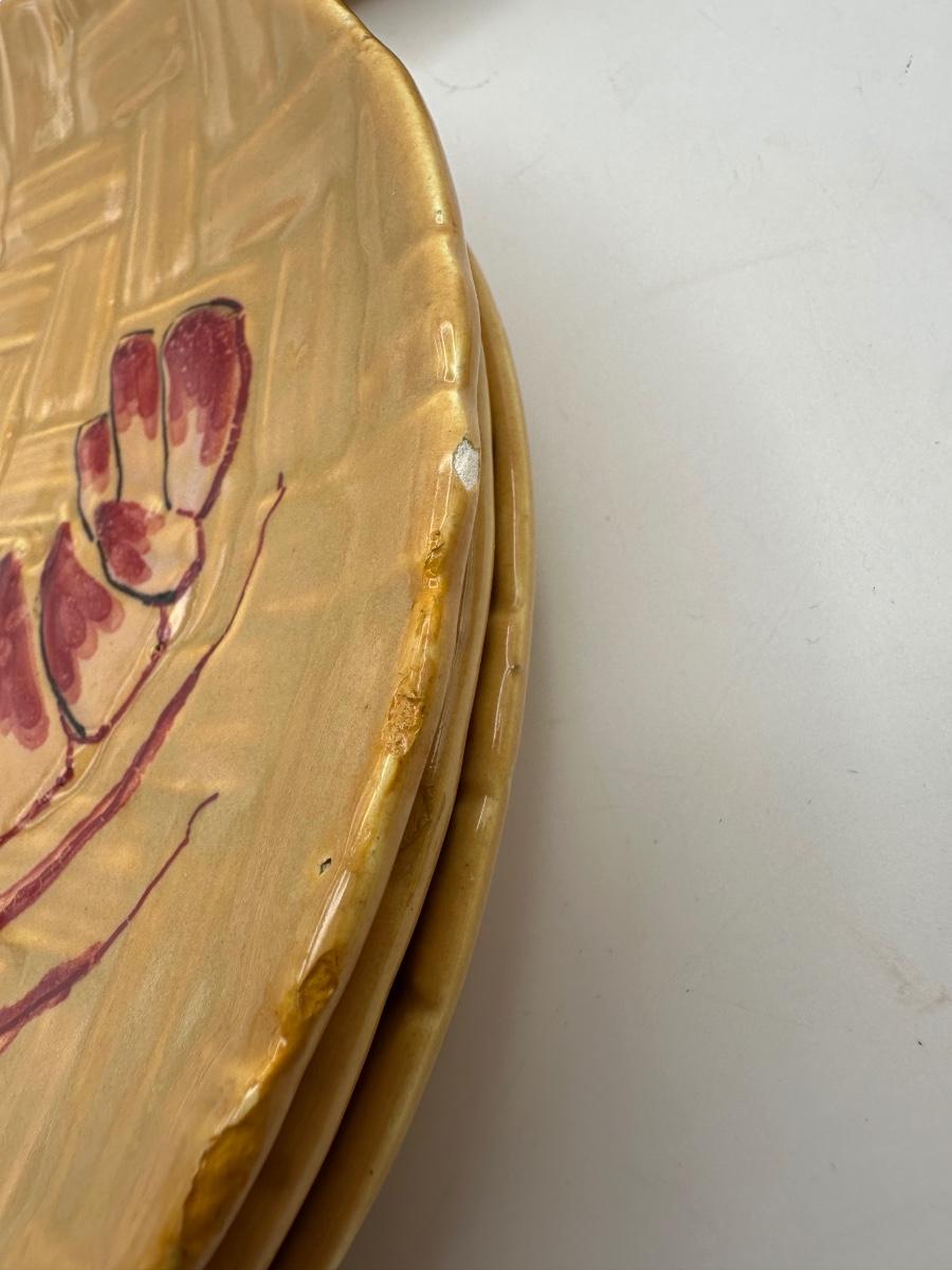 Condition: Several chips along the rims (see photos), but overall a colorful and eye-catching set for seafood boils, Cajun entertaining, or kitchen décor.