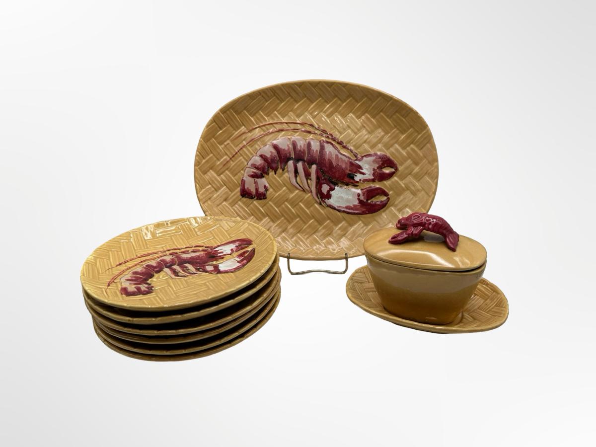Lobster Ceramic Serving Set – Platter, 6 Plates & Covered Dish