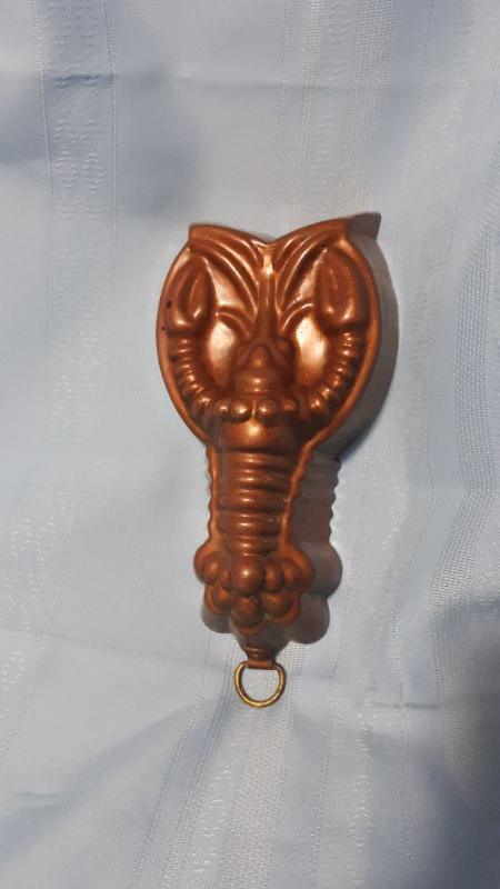 Lobster mold, copper, with hanging hook on tail, 6" long