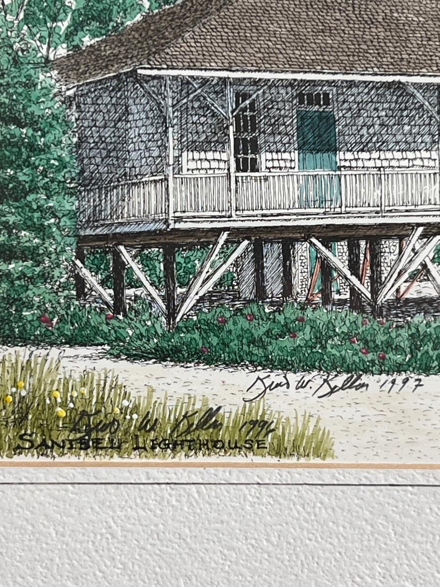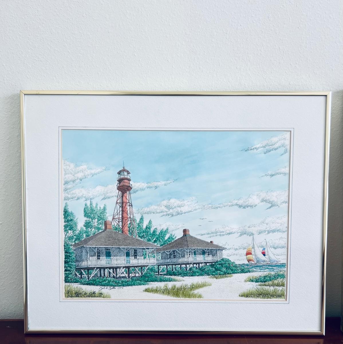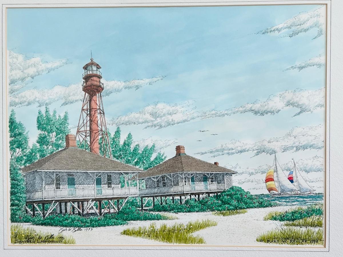 WATERCOLOR by Kurt Keller SANIBEL LIGHTHOUSE. Pen and ink print signed and individually hand watercolored by the artist. Measures 16 inches tall and 20 inches wide. BOCA GRANDE LIGHTHOUSE on Gasparilla Island, Measures 16 1/2 inches tall and 14 inches wide,