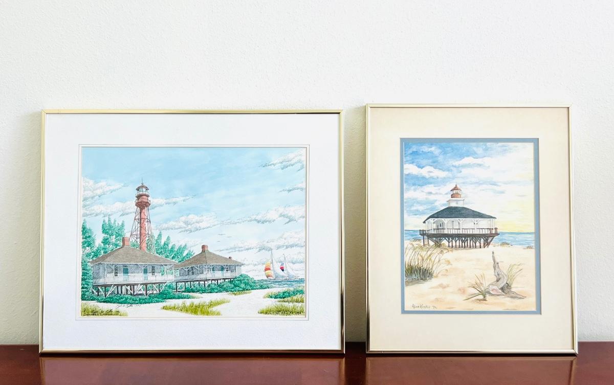 Lighthouse Art; WATERCOLOR Signed Kurt Keller & Alice Kestly