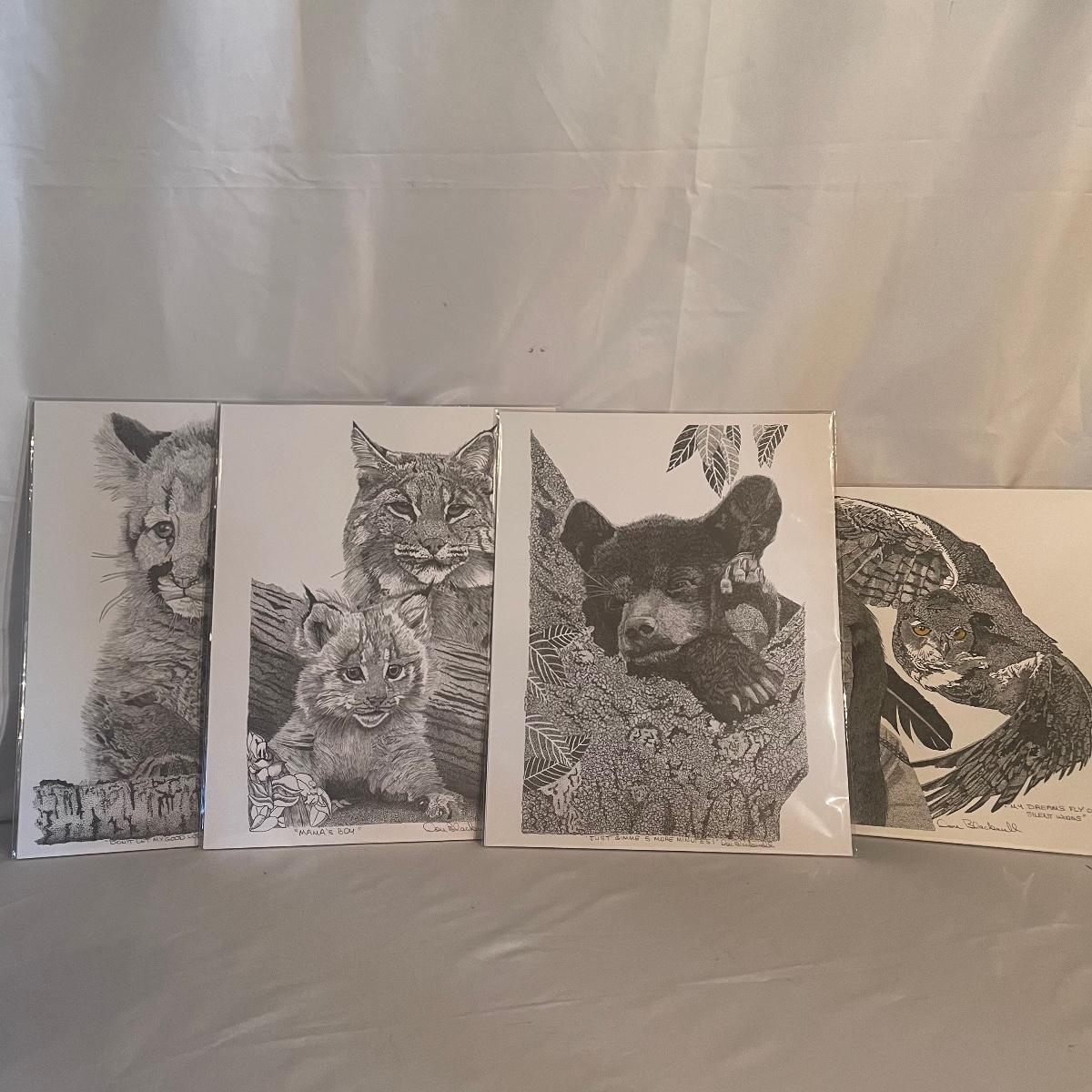 Four equally stunning prints by Flat Rock artist Don Blackwell. All four are signed and are in their original sleeves and are therefore in like new condition. They appear to be a combination of pencil/pen and ink on a white card stock. They measure 14” x 11”.