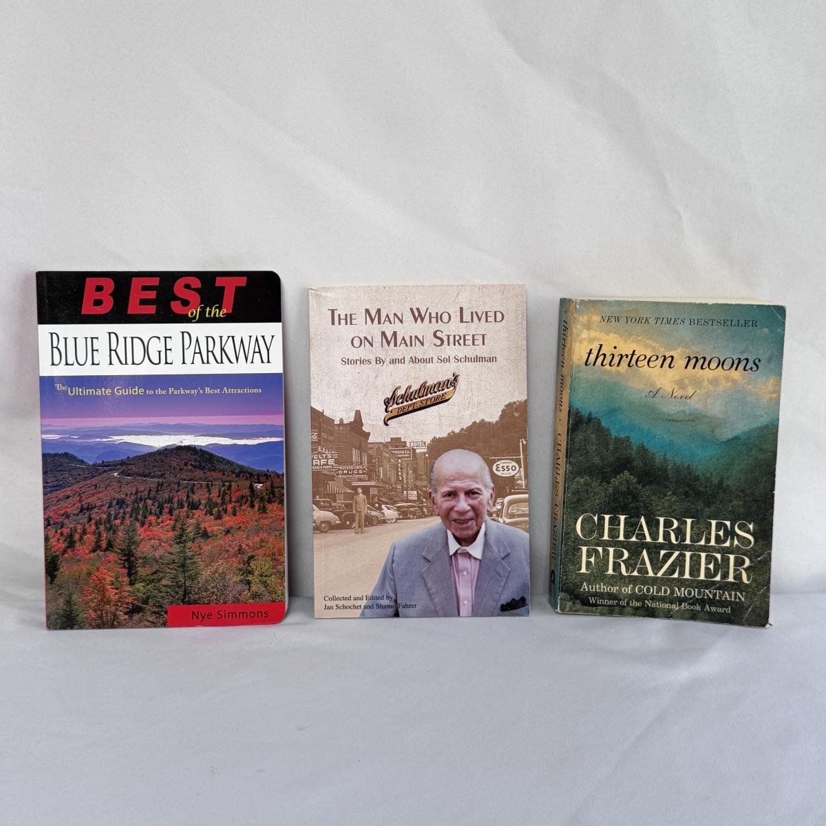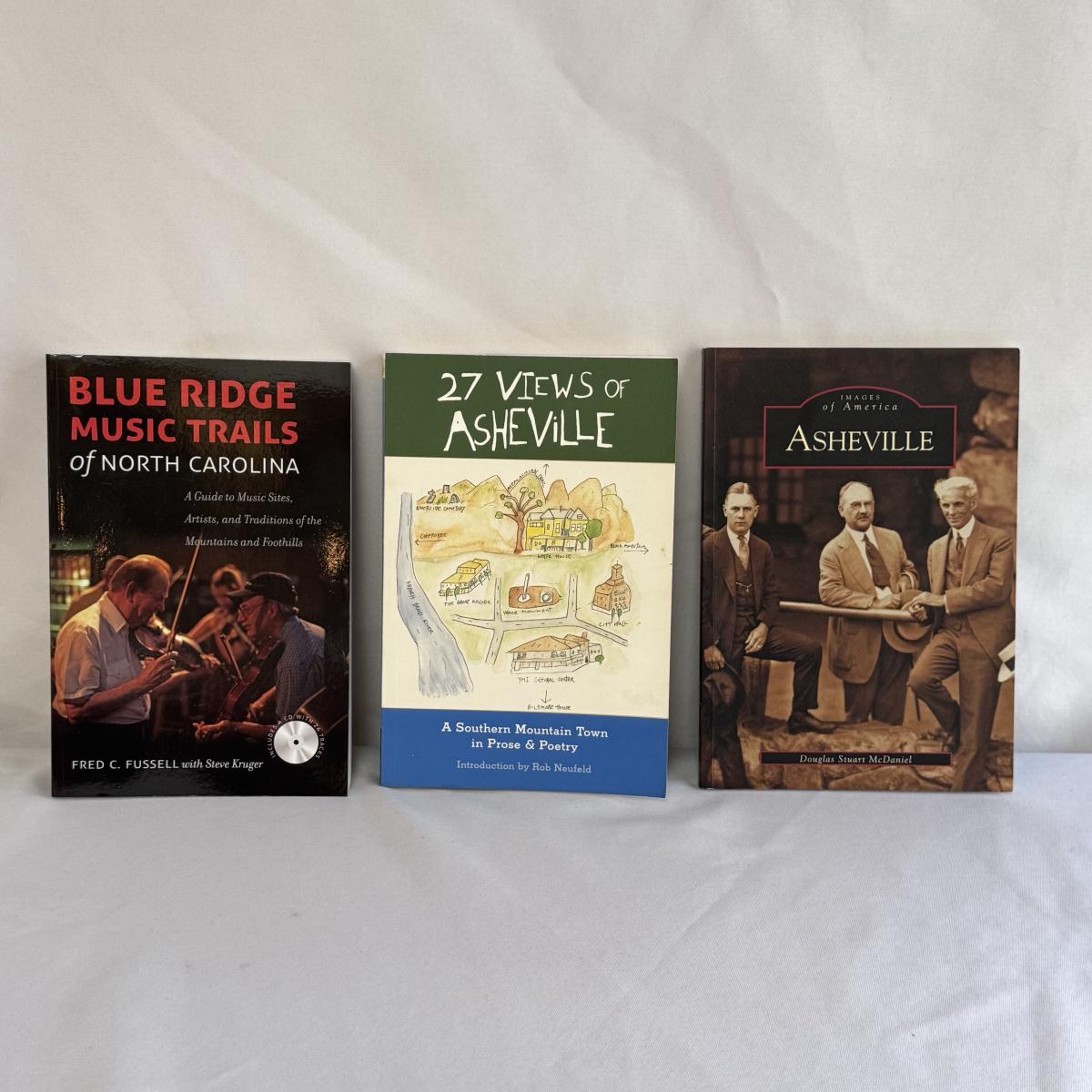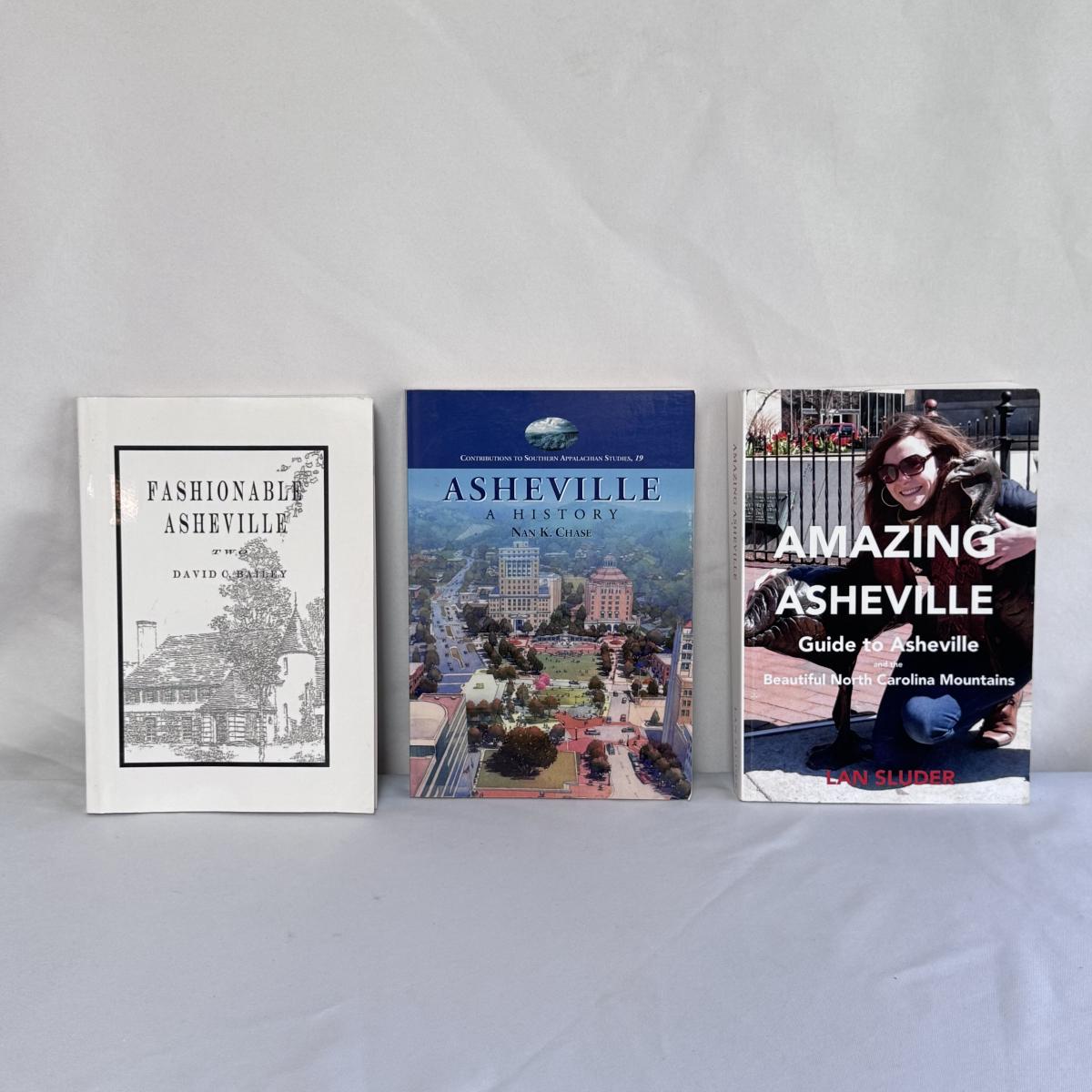 This lot includes 12 Asheville-themed books, along with a blue ceramic Asheville mug. The blue mug is stamped on the bottom - see pictures included. The books you’ll find are “Amazing Asheville” by Alan Sluder, “Fashionable Asheville” by David C. Bailey, “Asheville - A History” by Nan K. Chase, and “Images of America - Asheville” by Douglas Stuart McDaniel. You’ll also find “27 Views of Asheville” by Rob Neufeld, “Blue Ridge Music Trails of NC” by Fred C. Fussell, “Thirteen Moons” by Charles Frazier,” and “The Man Who Lived on Main Street” by Jan Schochet and Sharon Fahrer. Lastly, you’ll find “Best of the Blue Ridge Parkway” by Nye Simmons, “Best East Day Hikes - Blue Ridge Parkway” by Randy Johnson, and two copies of Five-Star Trails “Asheville” by Jennifer Pharr Davis. The largest book is “Amazing Asheville” that measures 7” x 10”H. Shipping available.