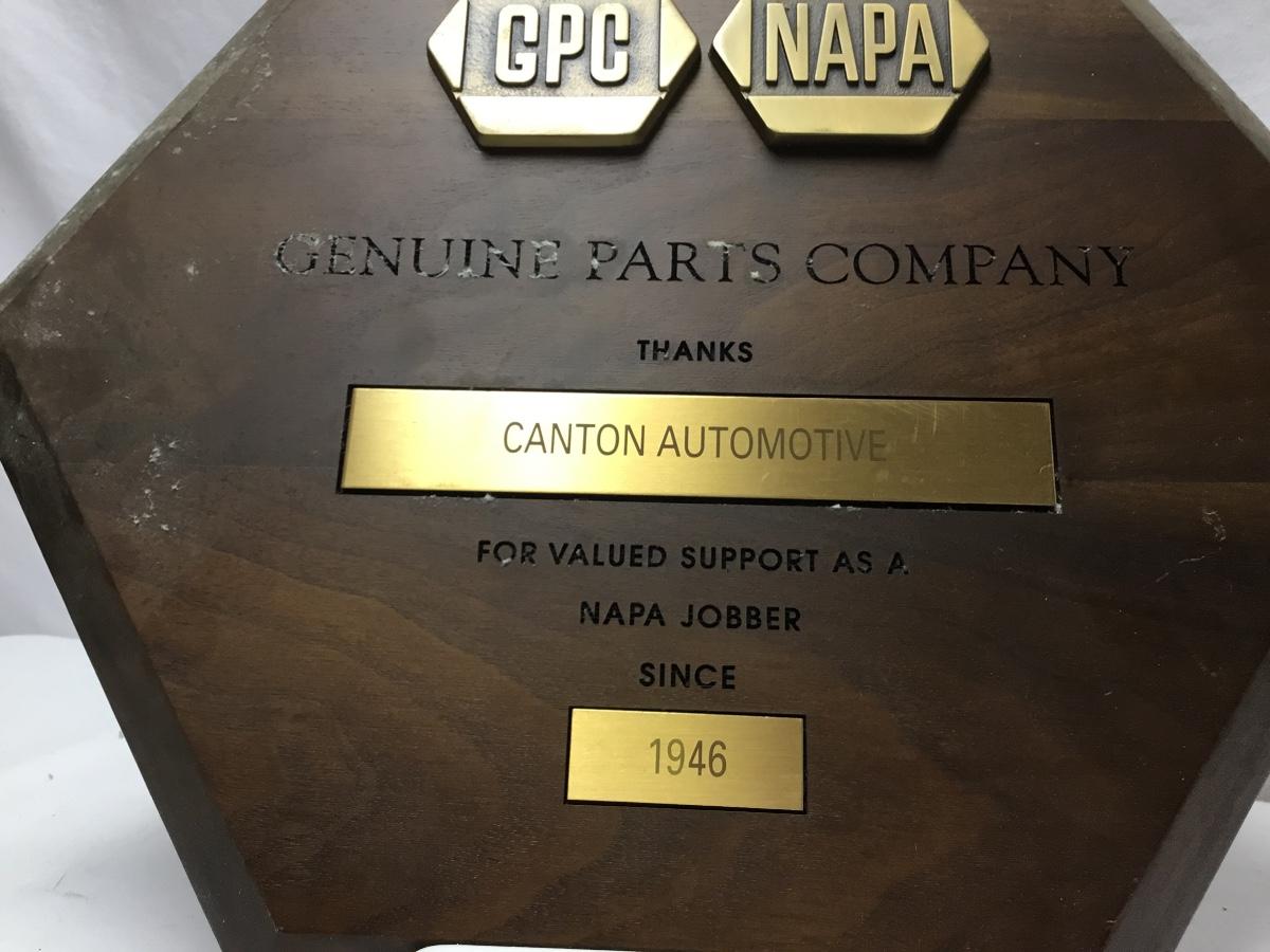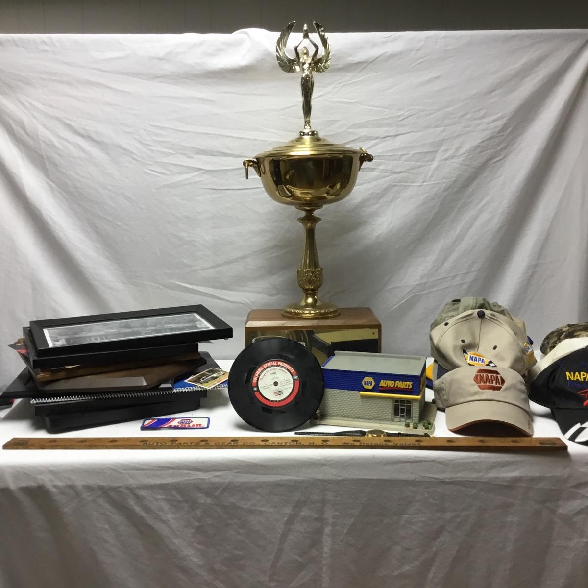 Turn back time and dive into the area of Historic Canton with the help of this lot! See many charmed NAPA hats, aged NAPA photos and memories, and more! Not to mention a large stunning award labeled “˜Genuine Parts Co. Man of The Year 1968’ addressed to Charles M. Nanney- standing 29” tall. See photos for details and further inventory. Local pickup only.