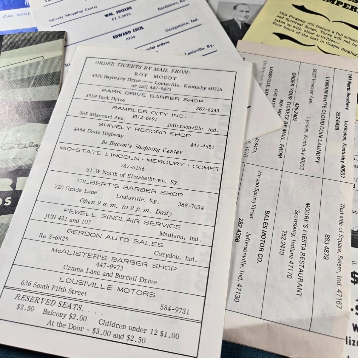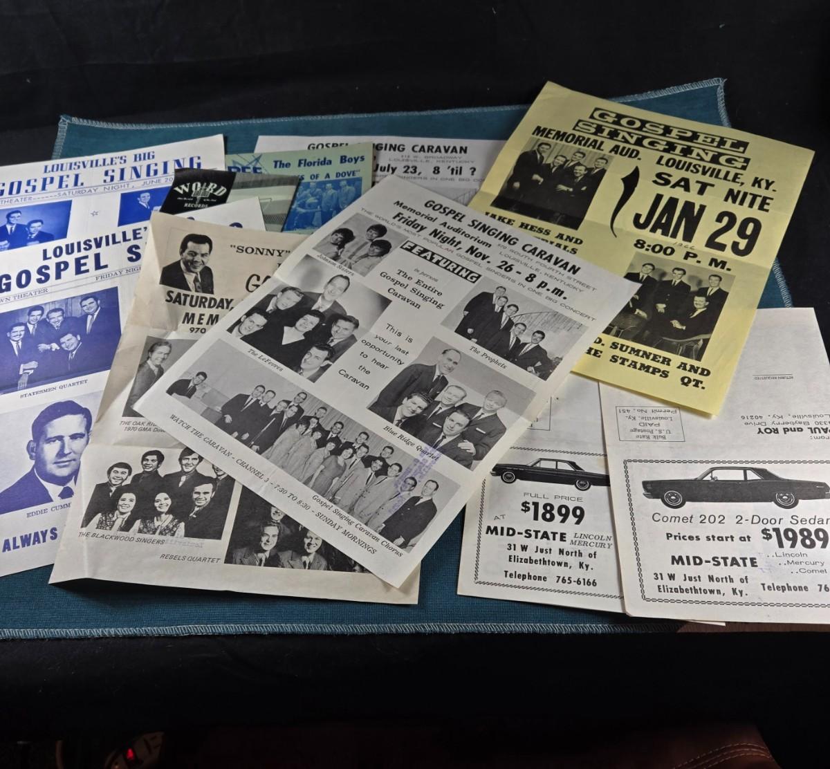 This auction lot is for Early Commercial Gospel Music Ephemera. This is a collection of Gospel Music Flyers and more. We love the car advertising - what would they sell for today? Show pictures, names and other information on some very early gospel groups that became quite commercial in their work.