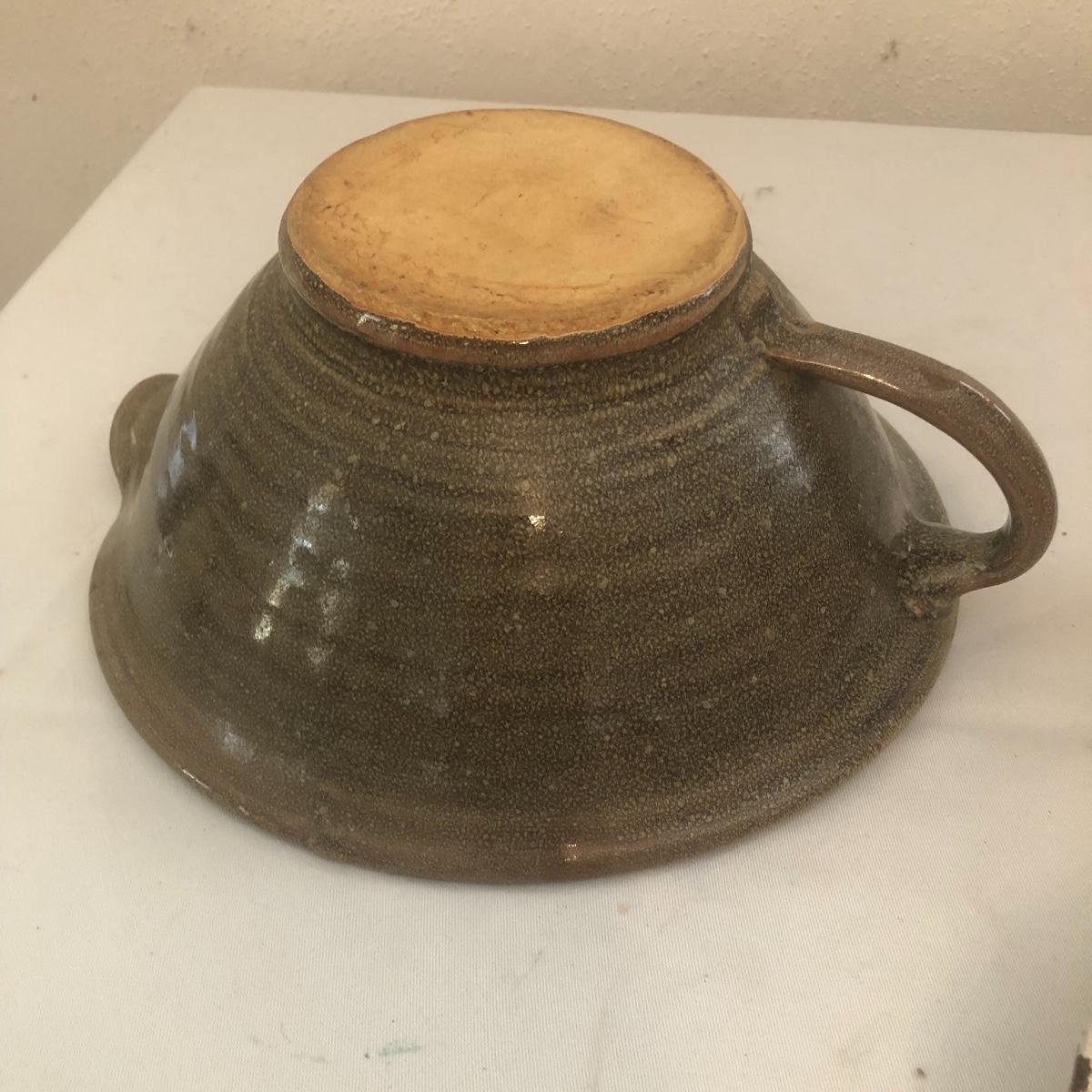 Largest piece (mixing bowl with handle) measures 11.25” d x 4.75” tall.