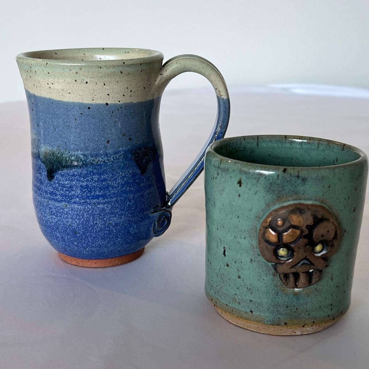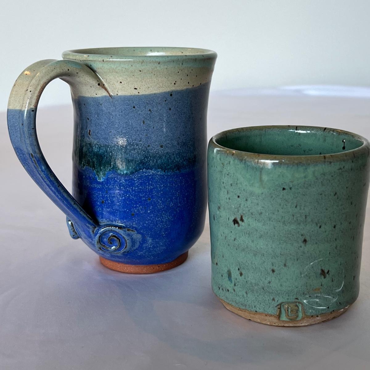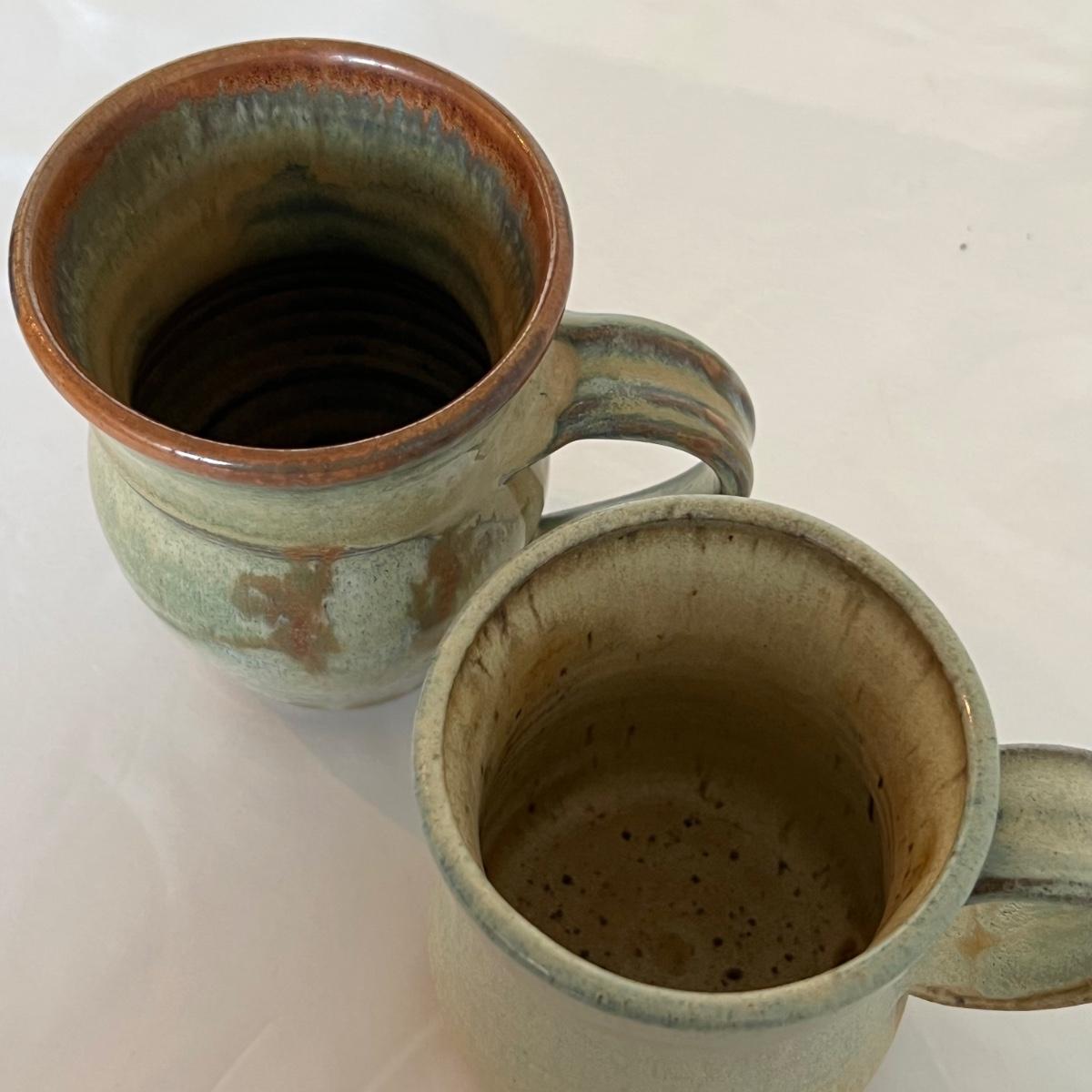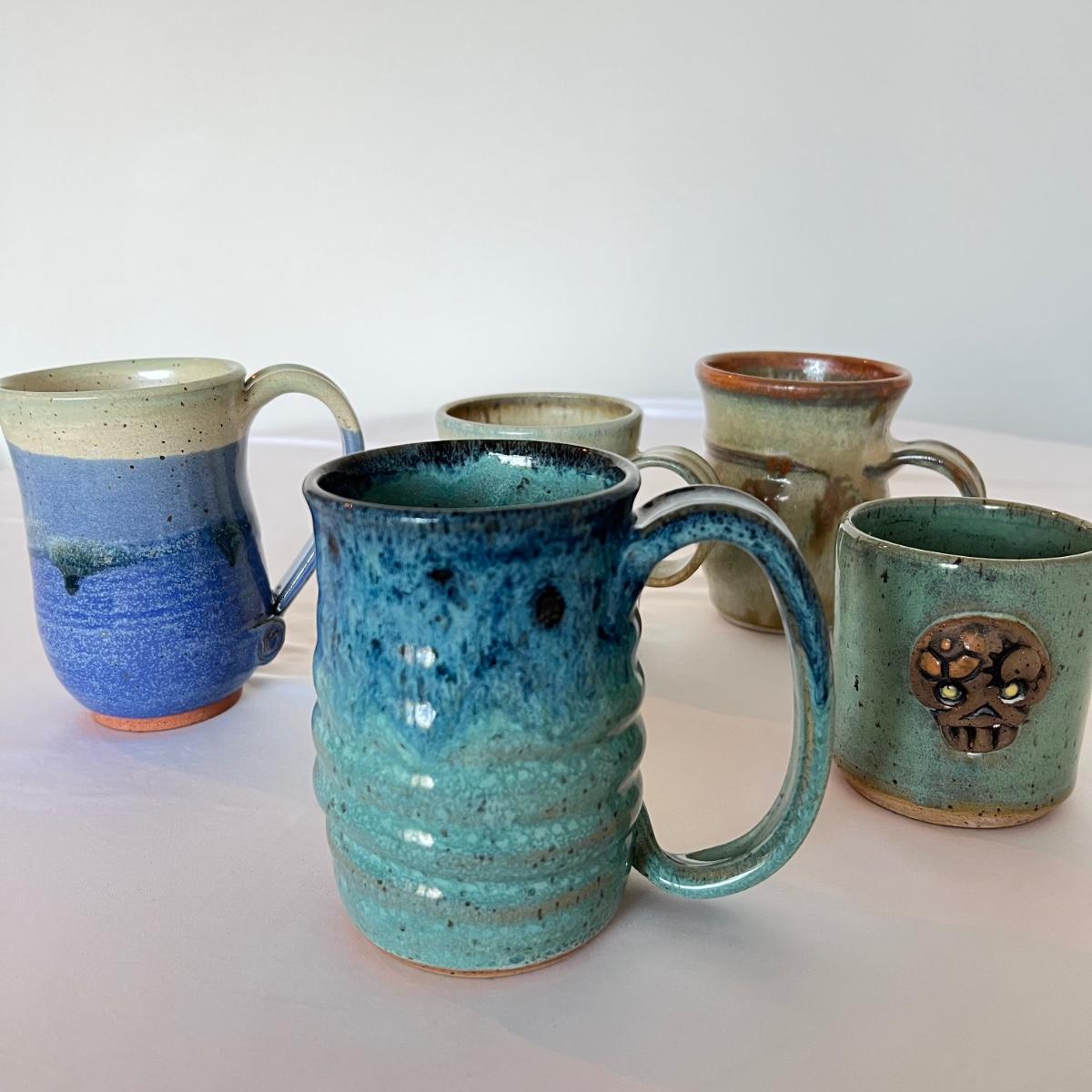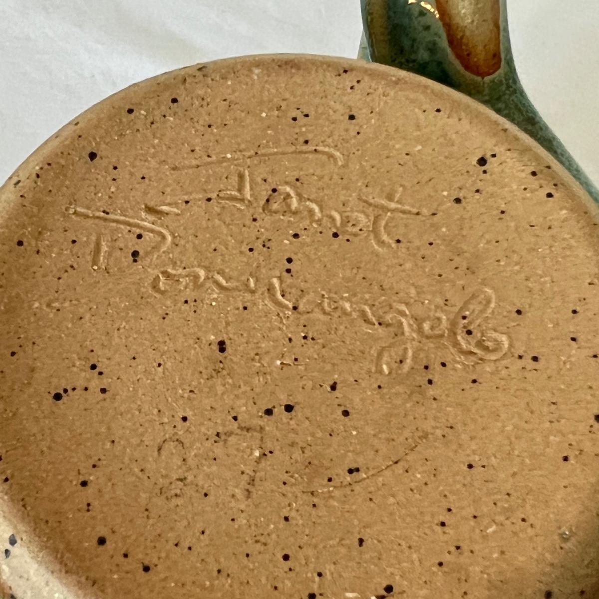 A lovely assortment of pottery coffee mugs in this lot that includes a beautiful mug from Janet Dannangelo with a glaze that is shades of blue over speckled clay. See images for all makers marks, etc. All mugs are in excellent condition with no chips, cracks or crazing.