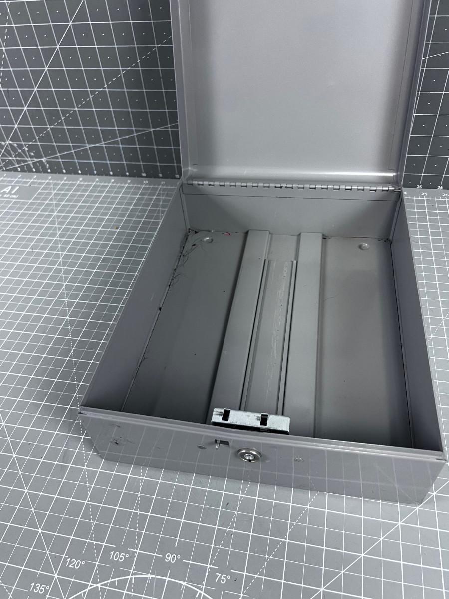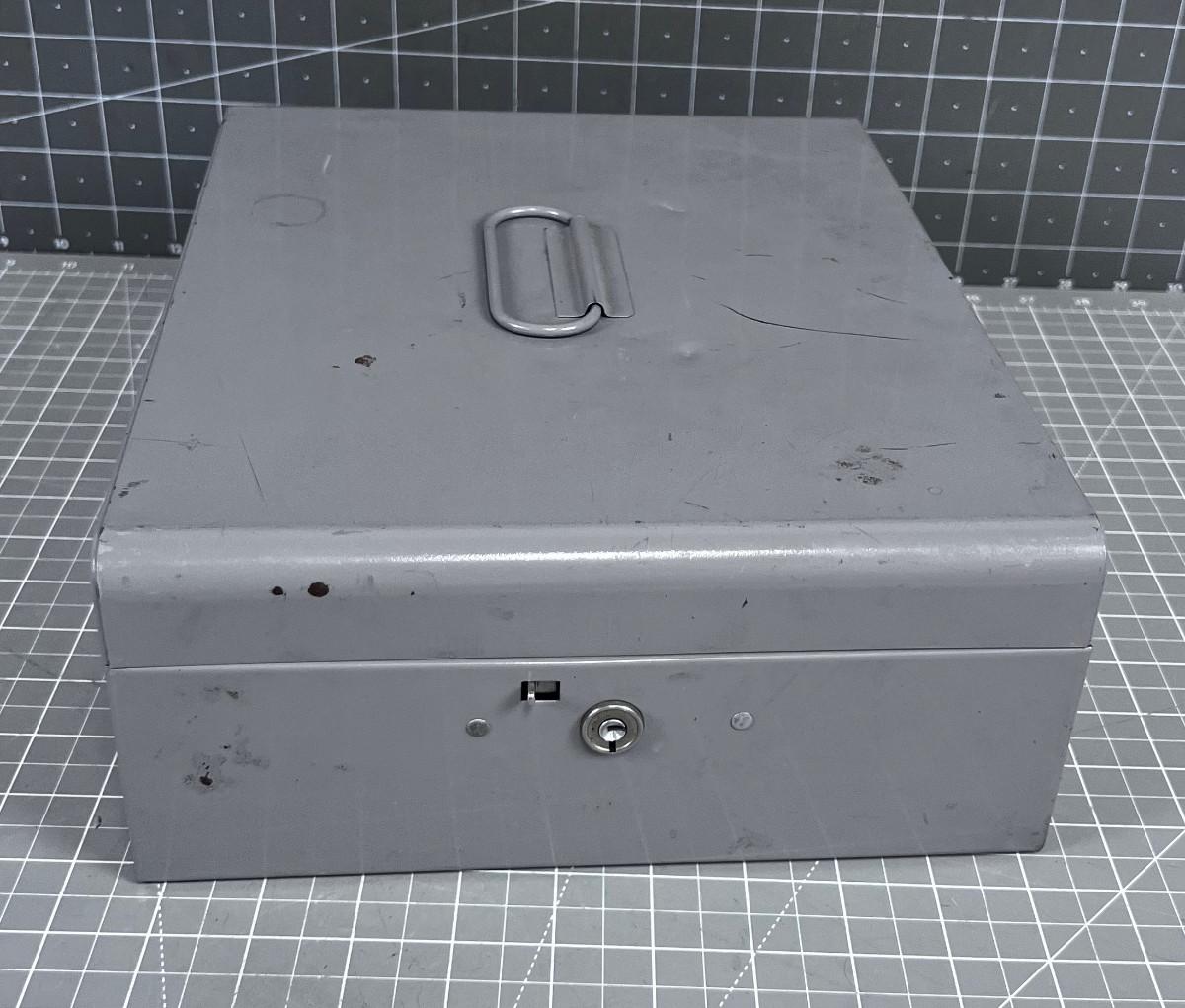 Still opens. Great for collecting Door Money. Measures 10 X 12 X 4"