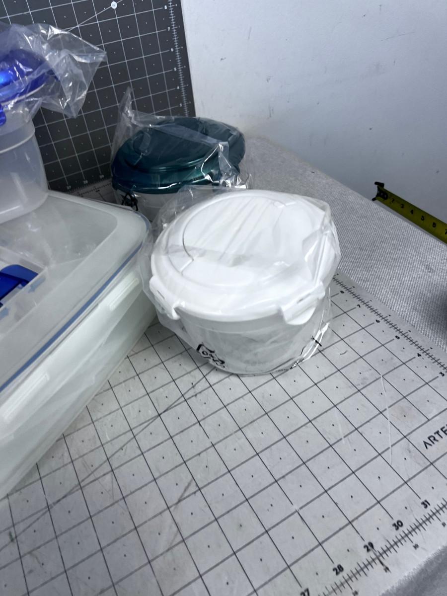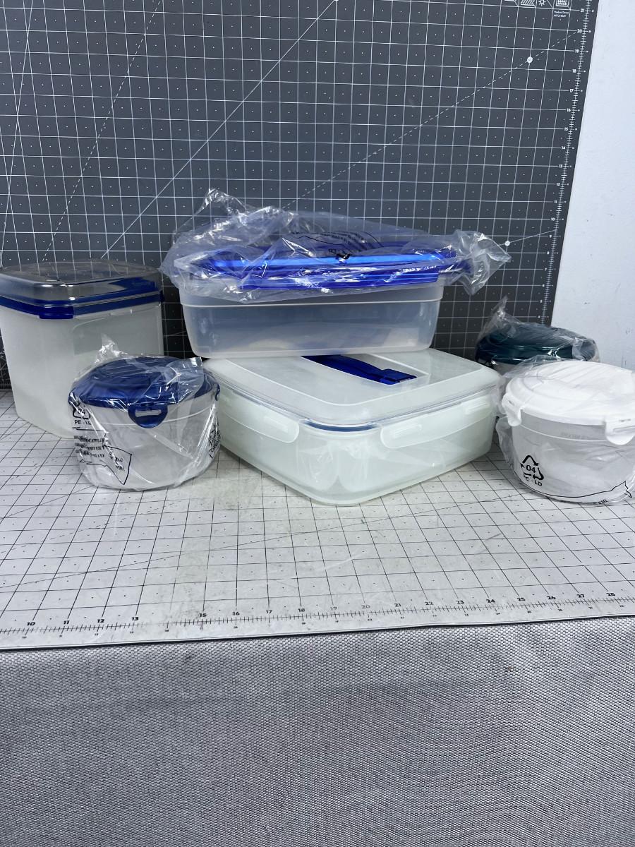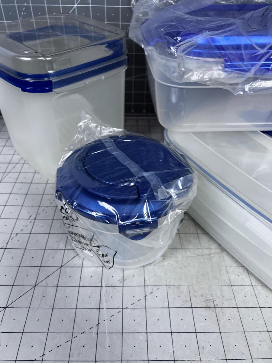Some Used. Mostly NEW all Plastic. Excellent for Food storage of all size; use in the Cupboard, refrigerator and freezer, Great for transport to the office or pot luck.