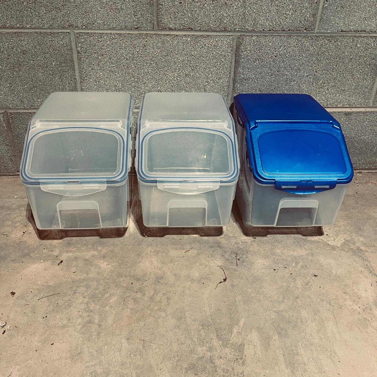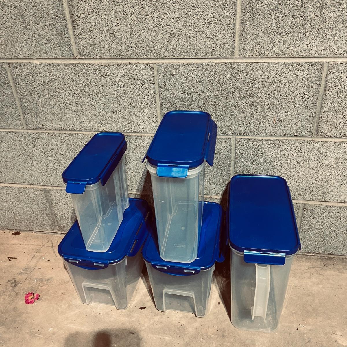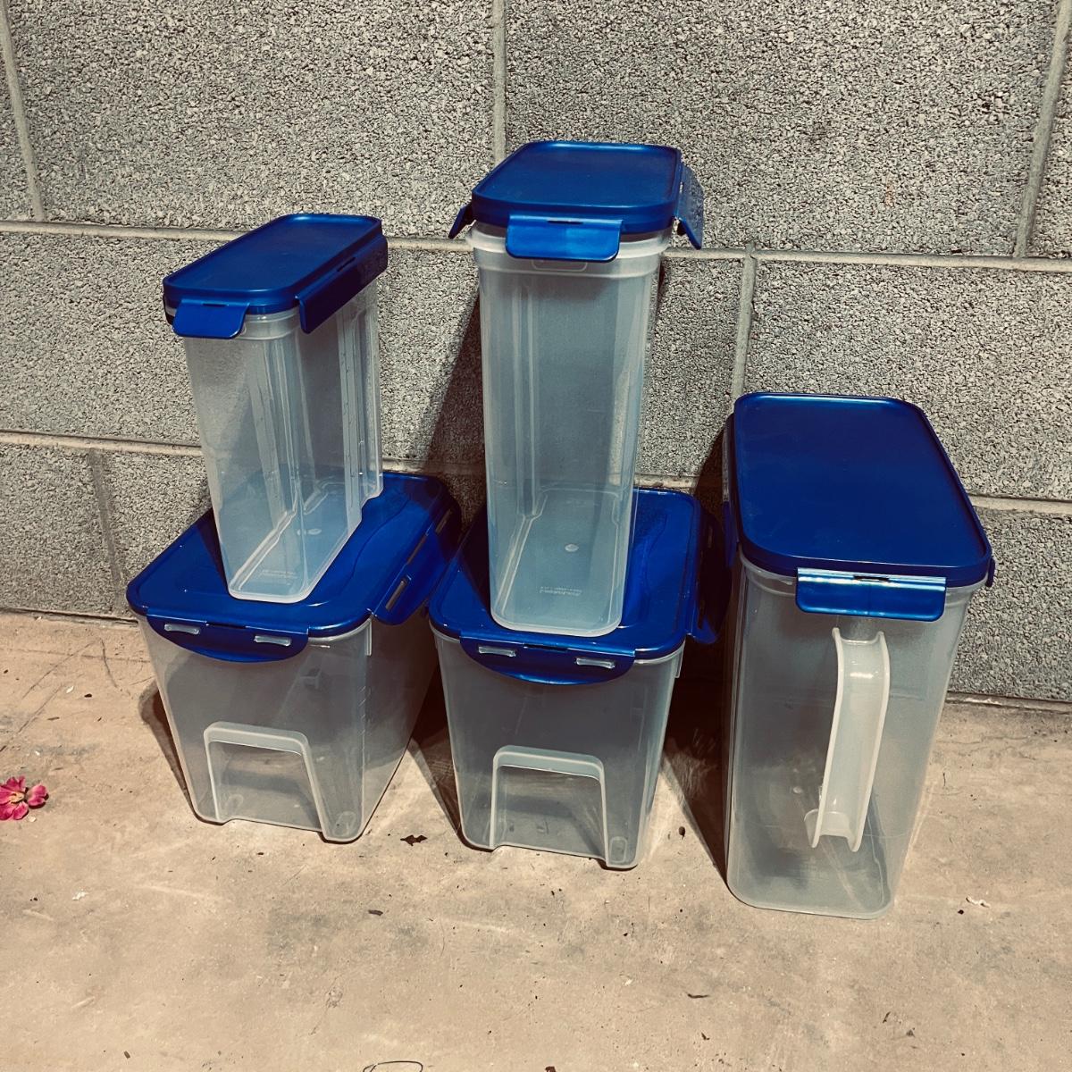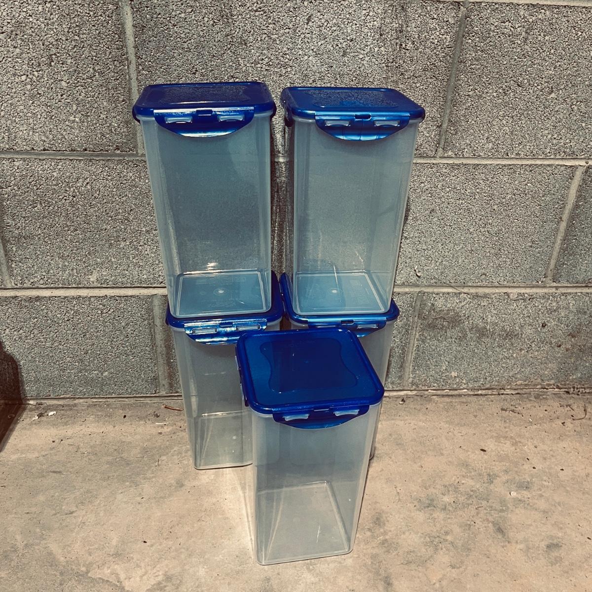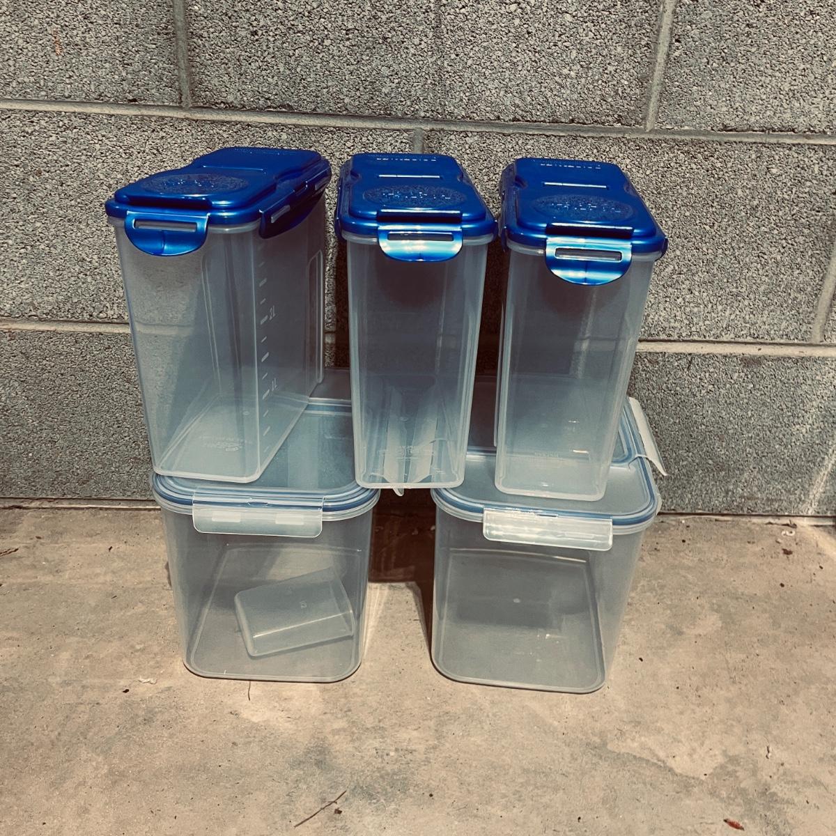 Lot includes over 20 pieces of Lock & Lock plastic containers with lids in a variety of sizes and styles. Largest container measures 9” x 13” x 10”H. The last six pictures show items added later and not in original picture.