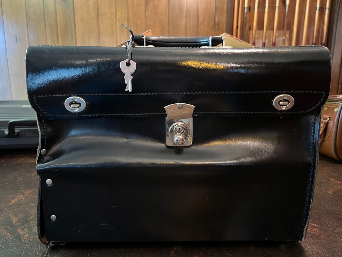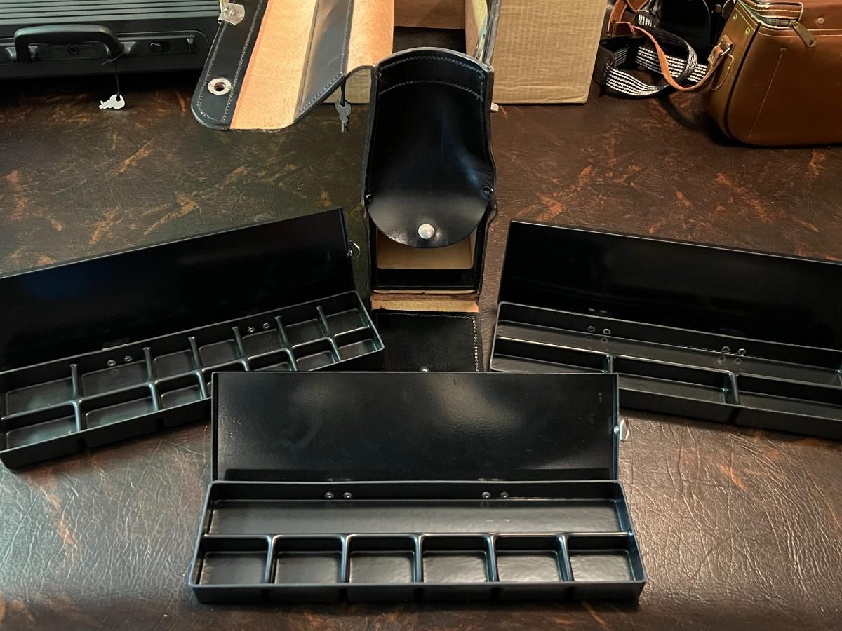 Lockable Leather Bag w/ 3 Compartment Drawers for Coins/Jewelery