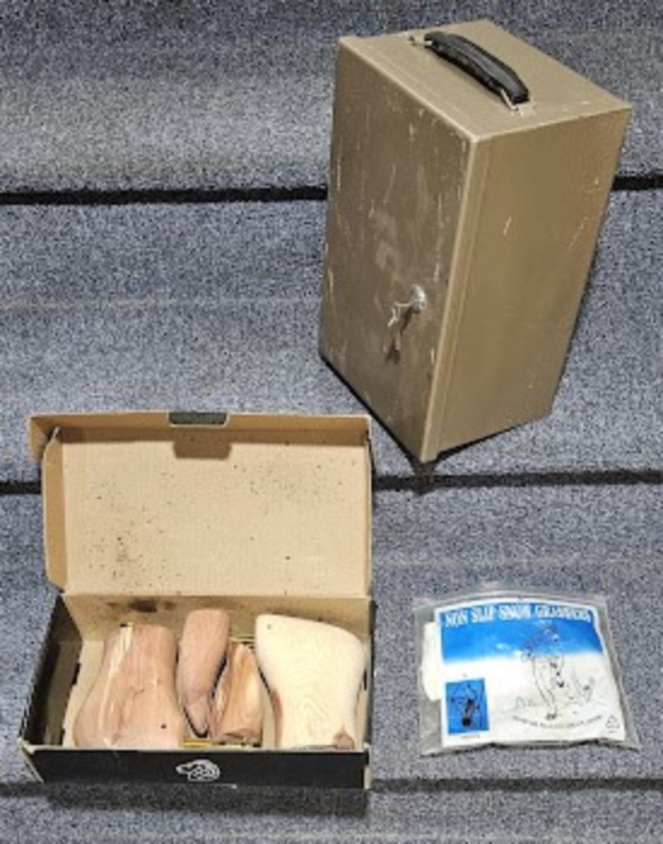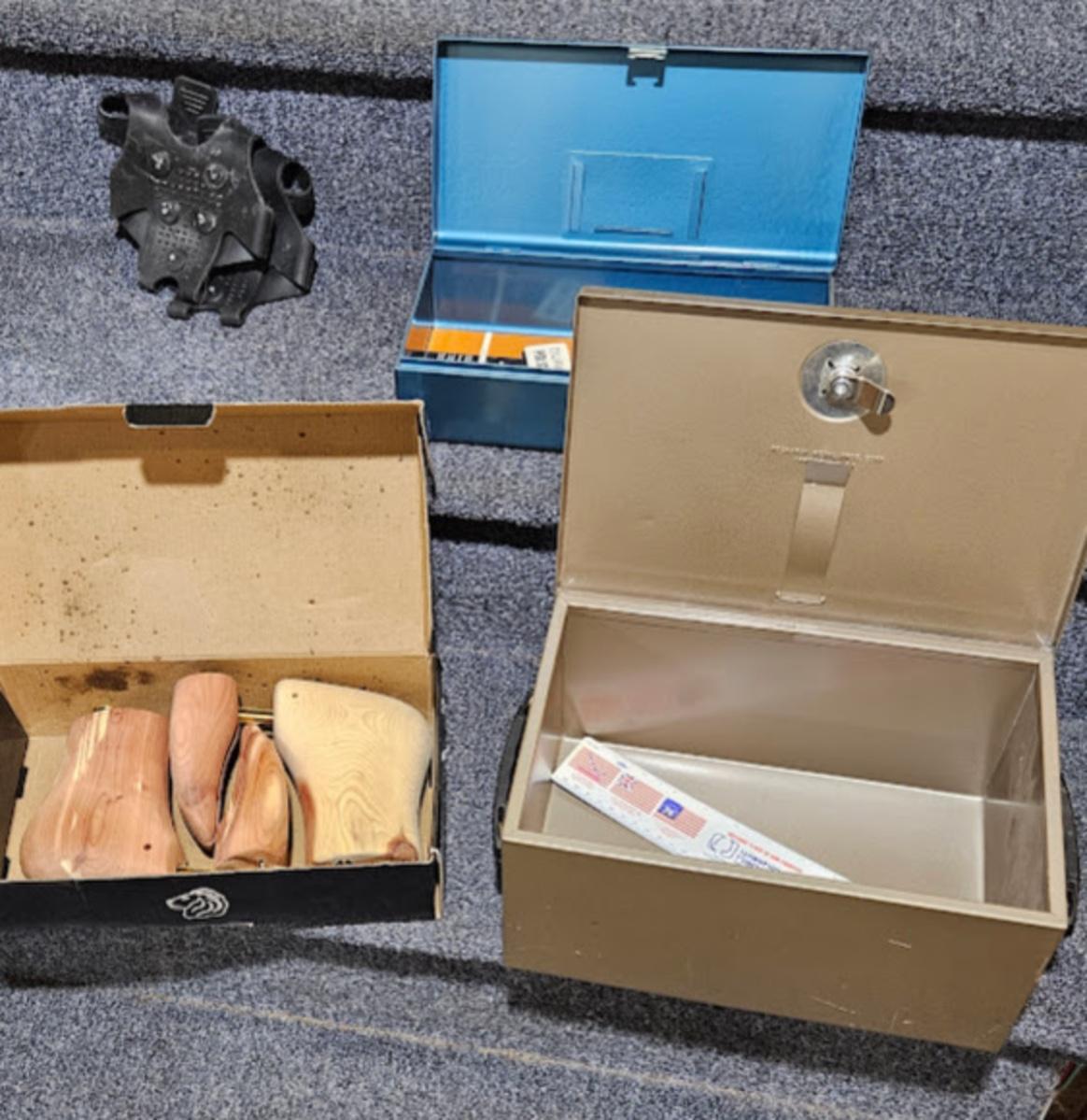 Lockbox w/keys, aeromatic cedar shoe tree, snow grabber shoes