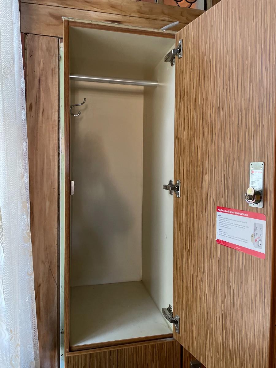 Freestanding set of 4 lockable lockers. Combinations can be reset.