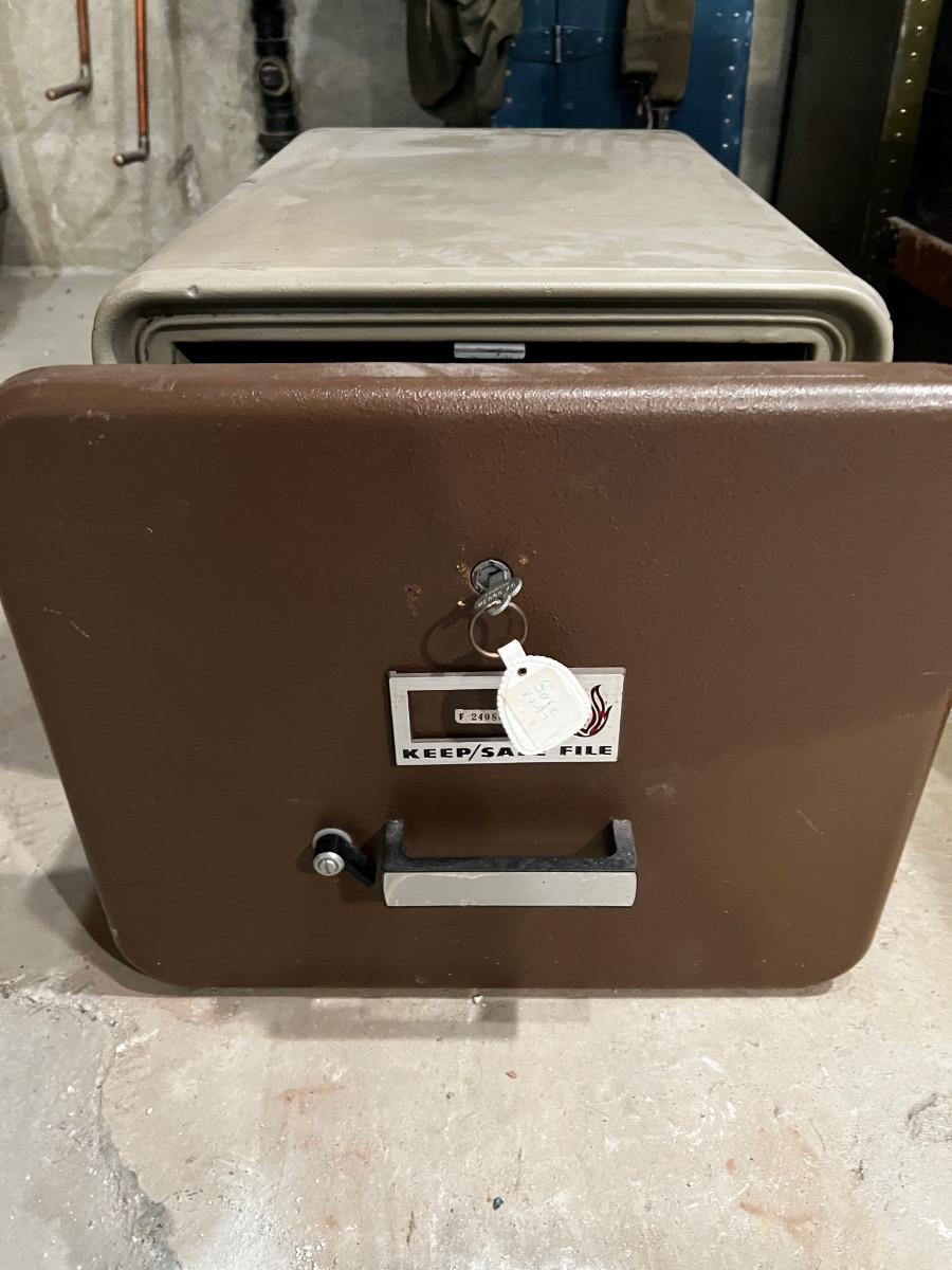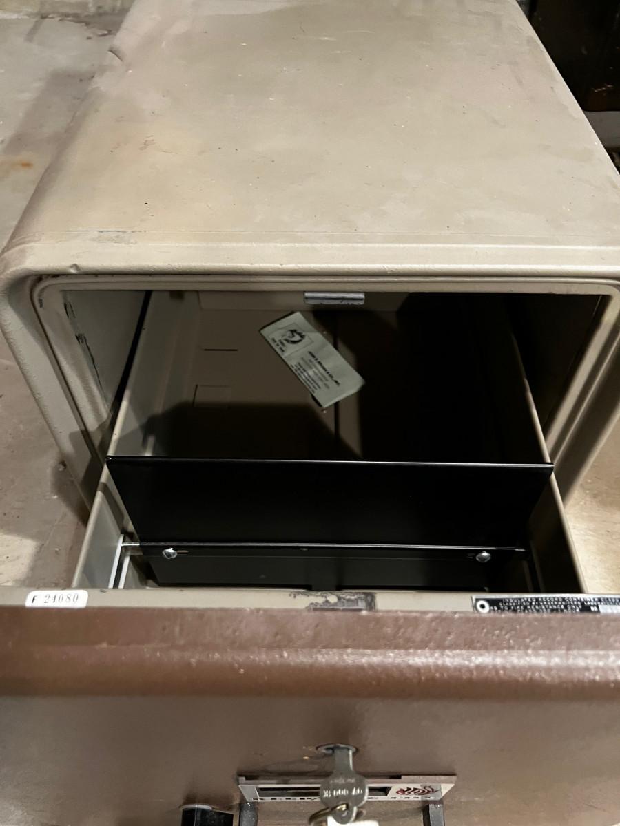 Yes it has a key. HEAVY BRING HELP 24" X 17 x 14" Good DEAL