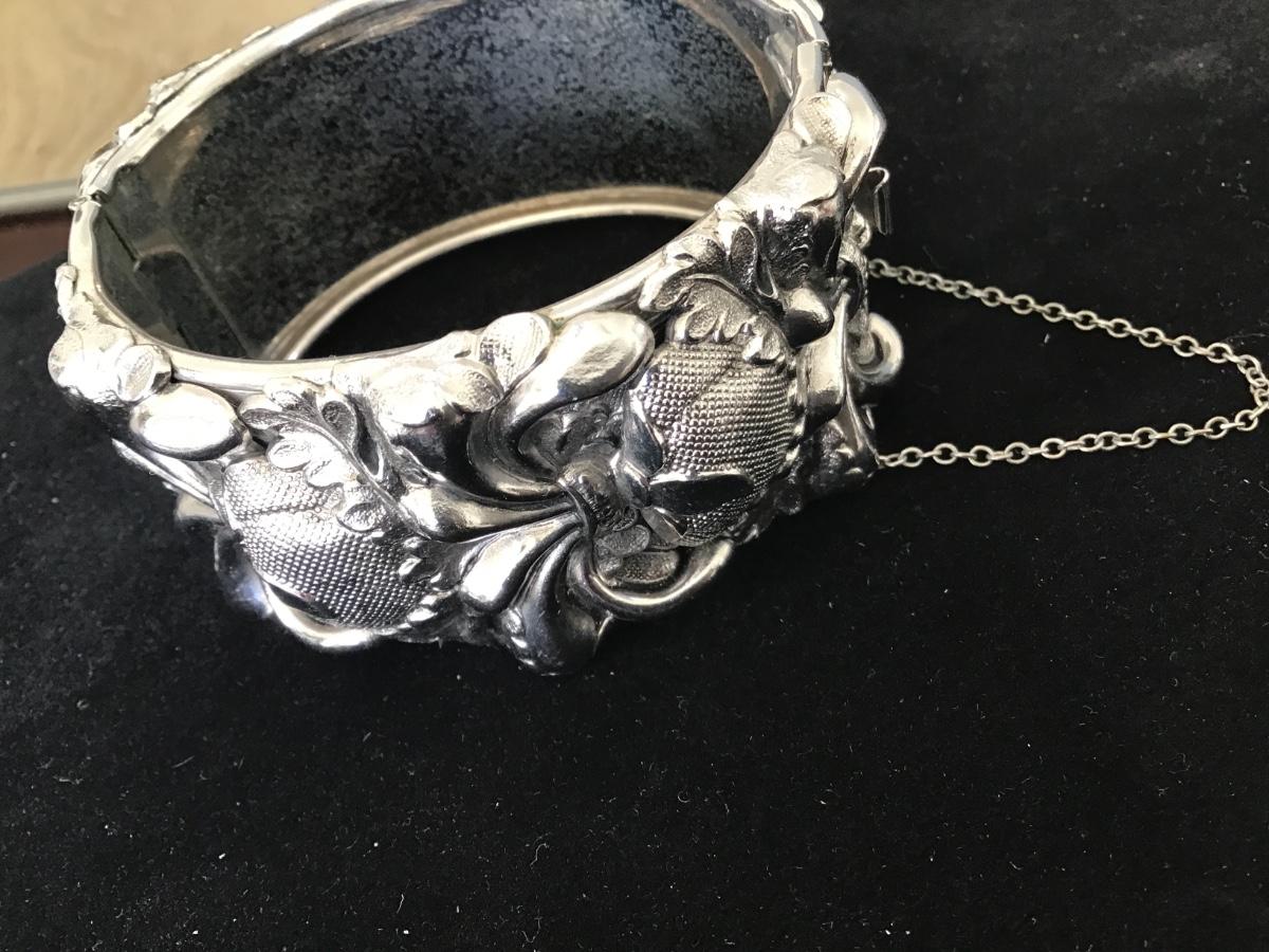 Locking Vintage Silver Tone Floral Bracelet