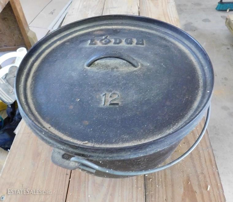 Lodge #12 Bean Pot with Lid in very good condition, Needs cleaning and some seasoning.