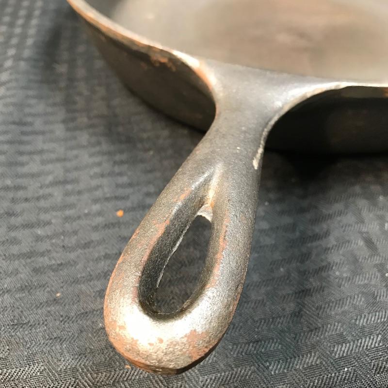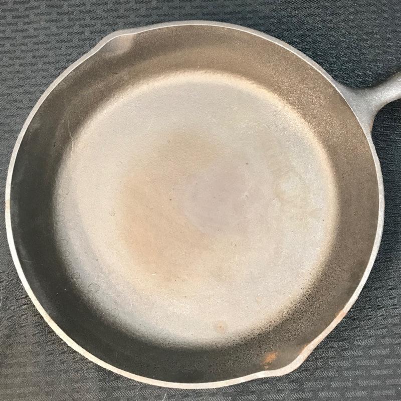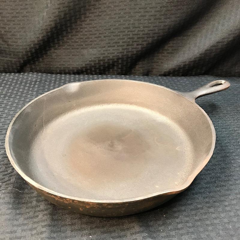 Overall in good condition save for some surface rust. The surface rust is mostly on the exterior of the pan along the sides and bottoms however, there are some small spots on the interior of the pan; see pictures.