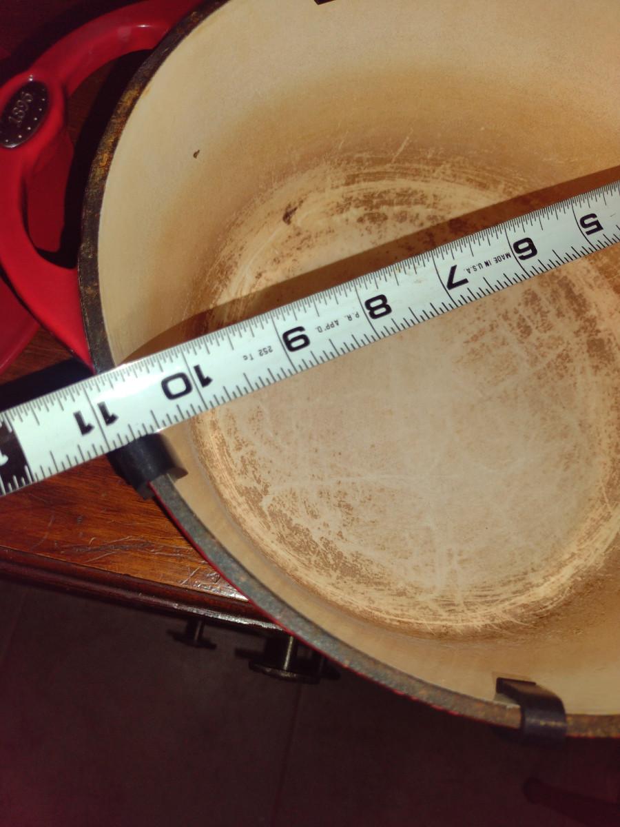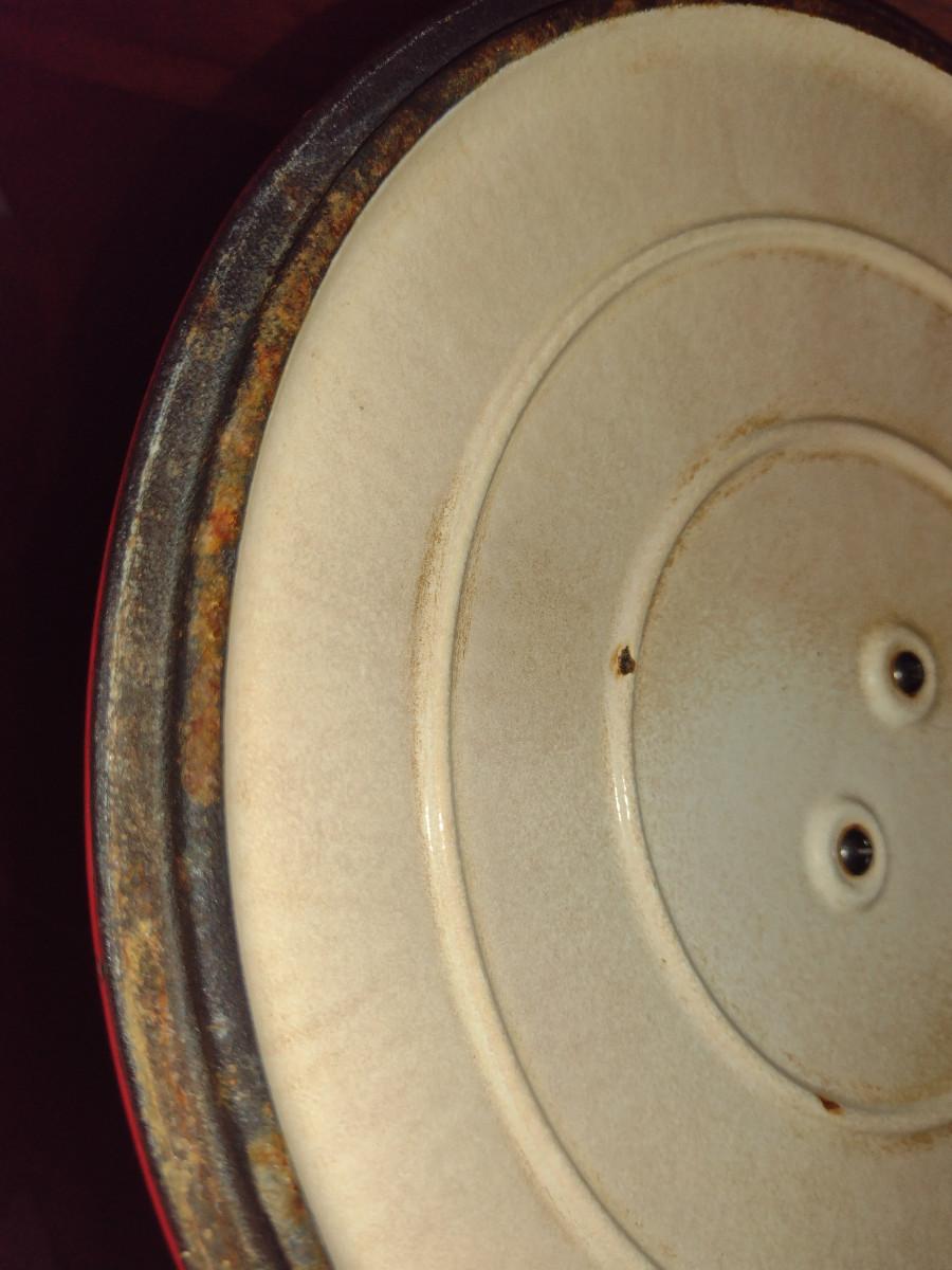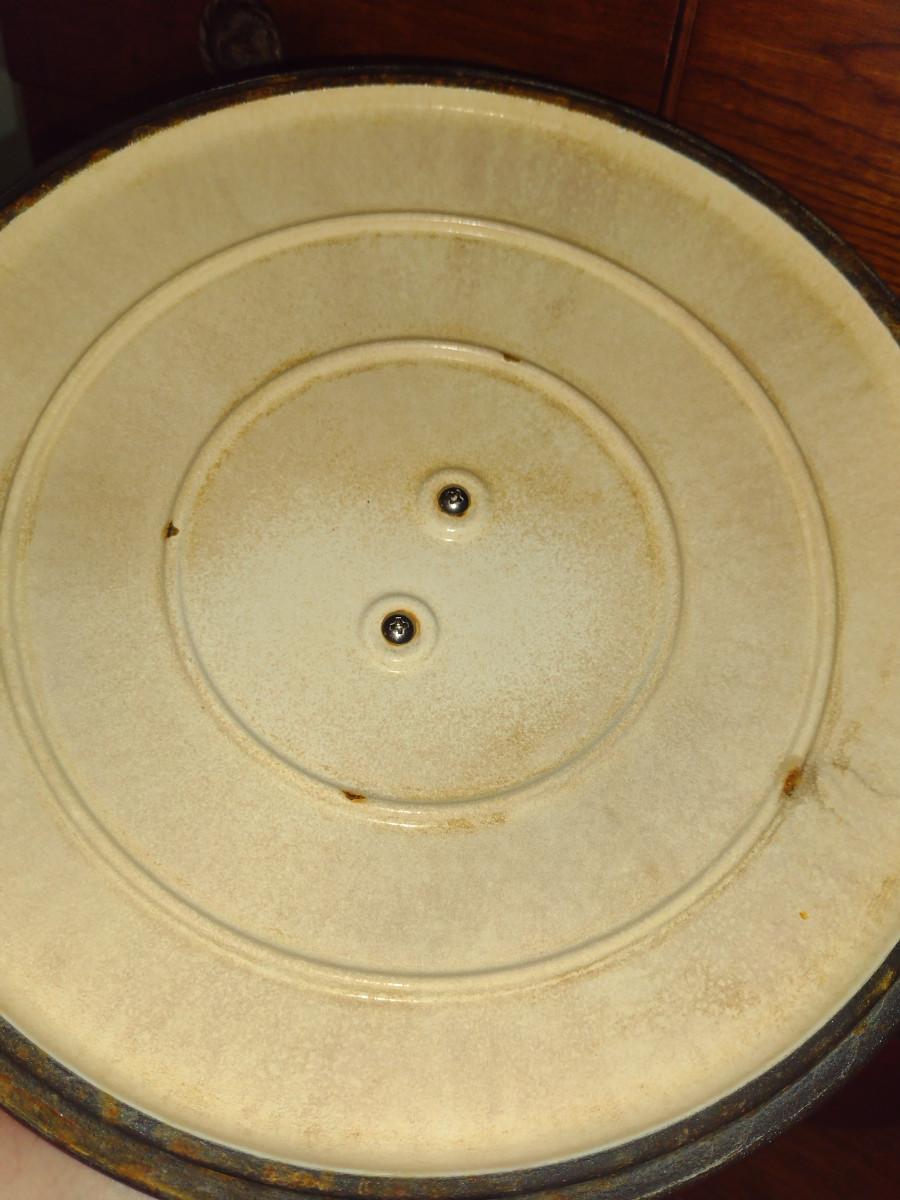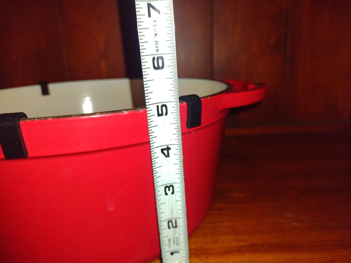 Lodge 1896 Enamel on Cast Iron Covered Dutch Oven- 6 Quart Capacity. Item is in used condition and has some discoloration and some chipping. Please see all pictures for condition.