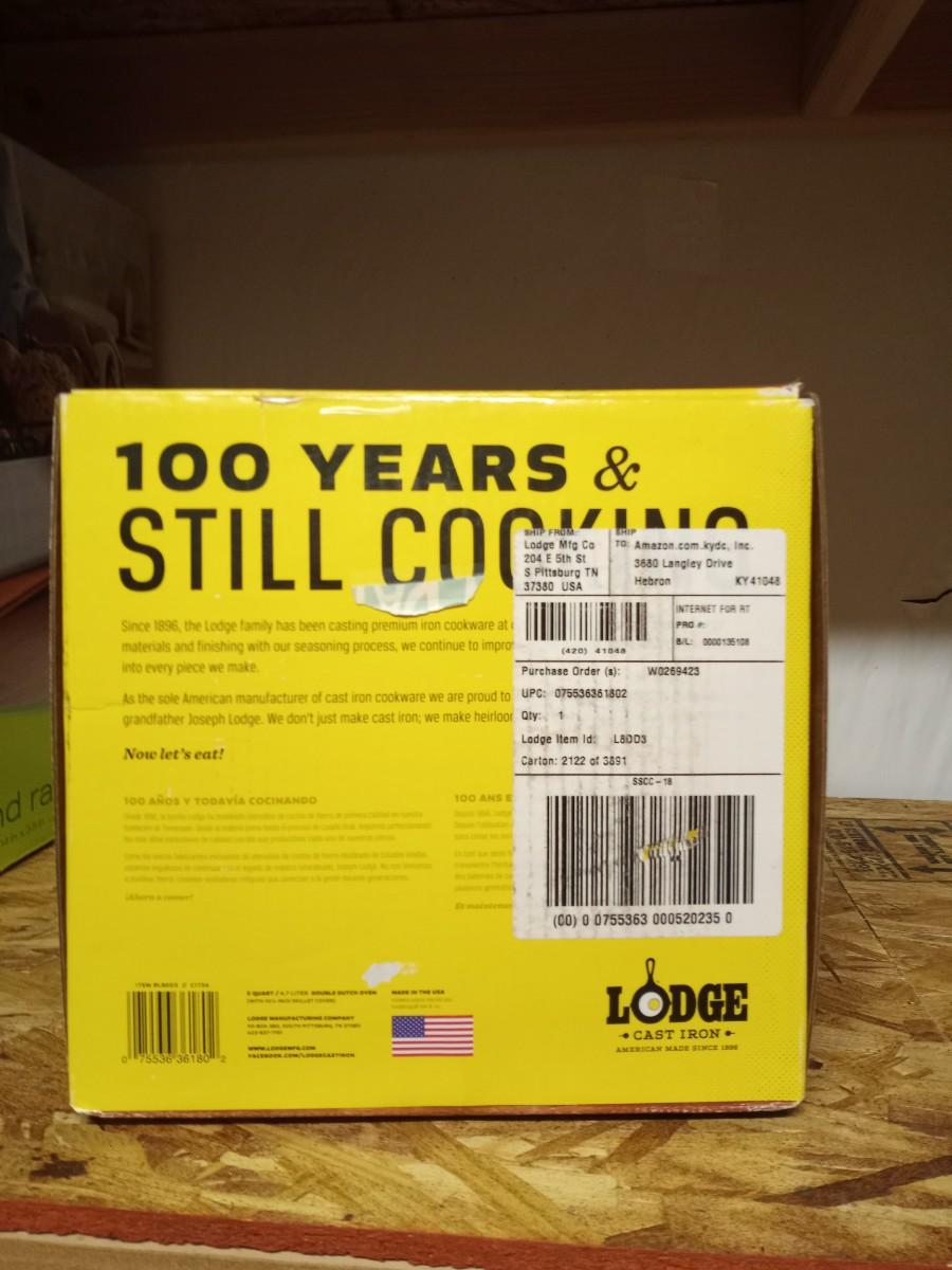 LODGE CAST IRON 5QT. DUTCH OVEN STILL IN BOX