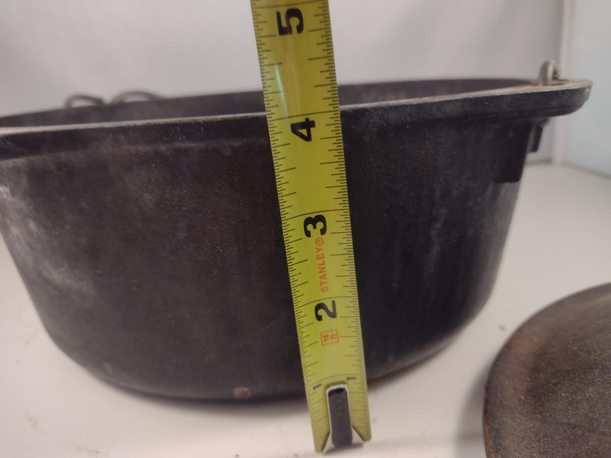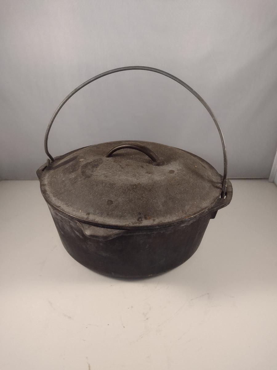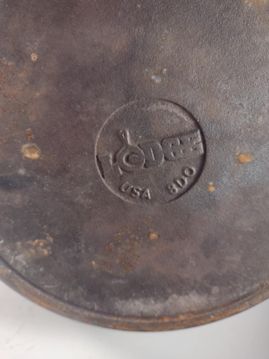 Lodge Cast Iron Covered Dutch Oven- Approx 10 1/2" in Diameter, 4" Deep. Please see all pictures regarding condition of finish.