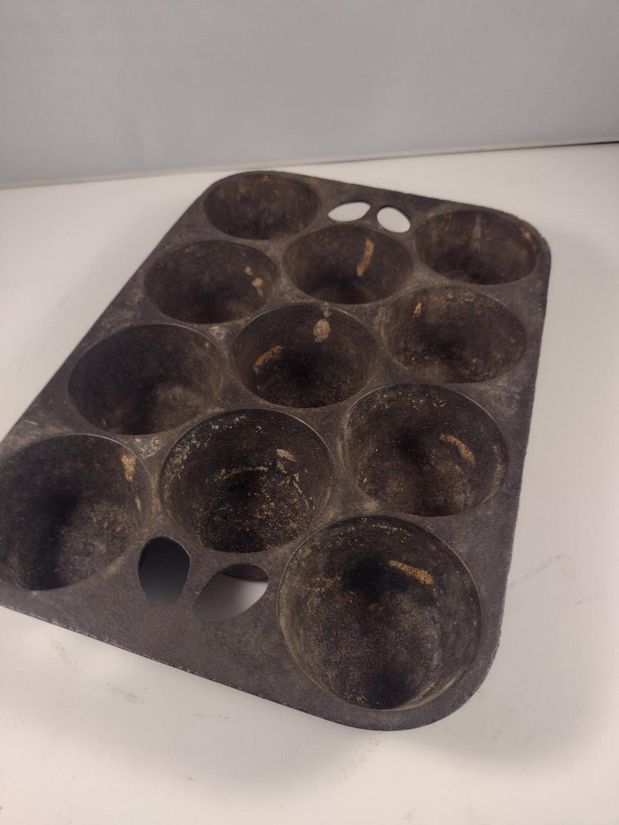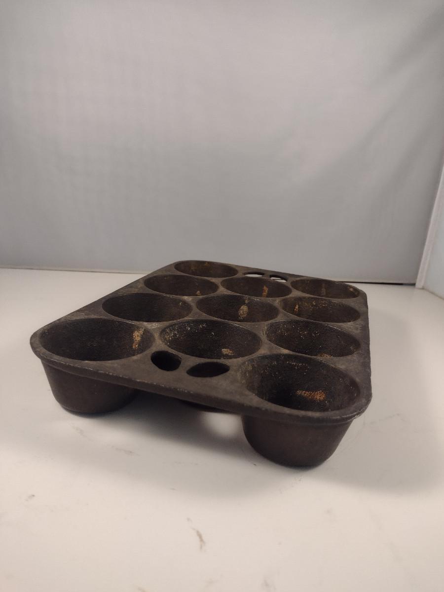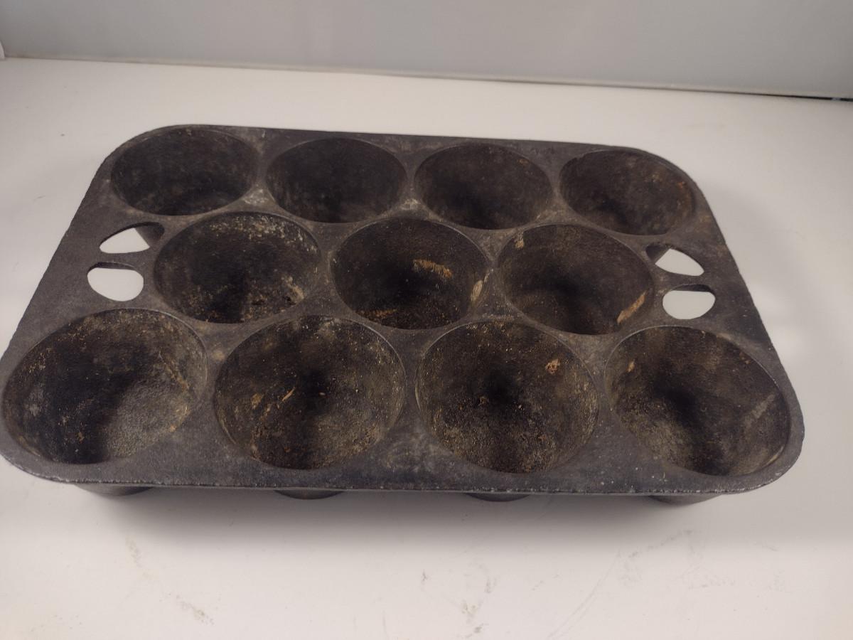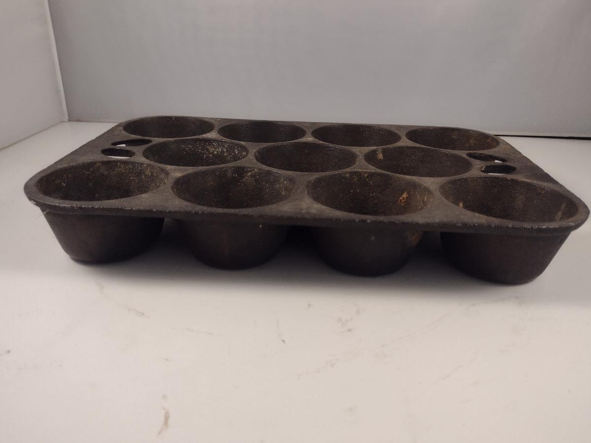 Lodge Cast Iron Eleven Cavity Popover/Muffin Pan (Choice B). Please see all pictures regarding condition of finish.
