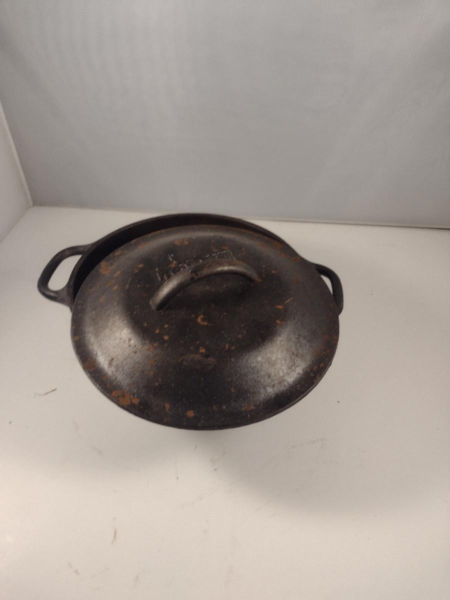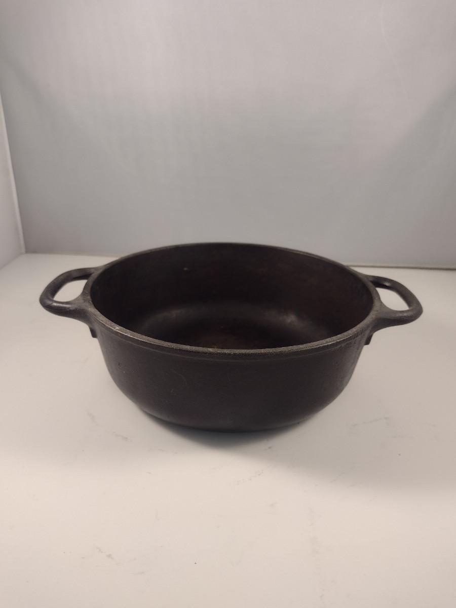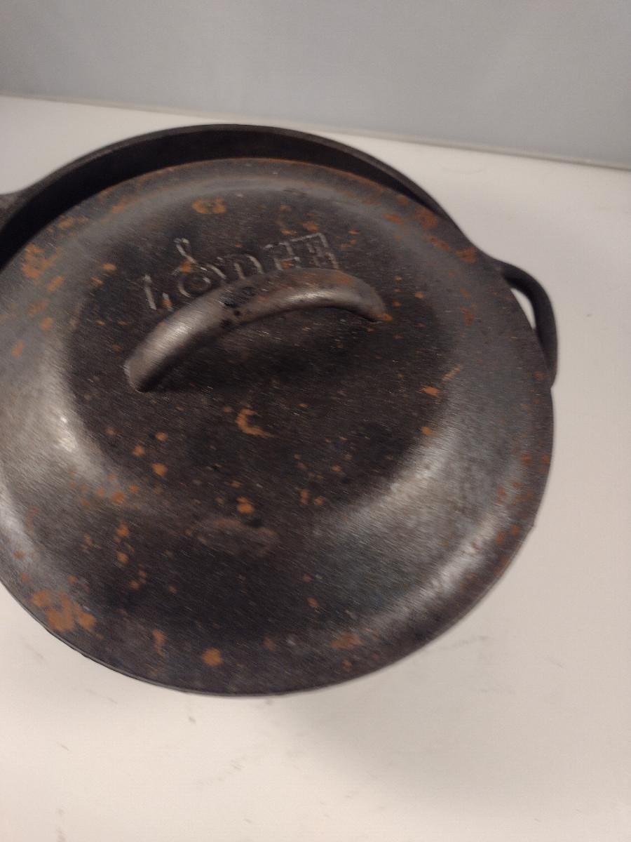 Lodge Covered Cast Iron Pot- Approx 8 1/4" in Diameter, 3" Deep. Please see all pictures regarding condition of finish.