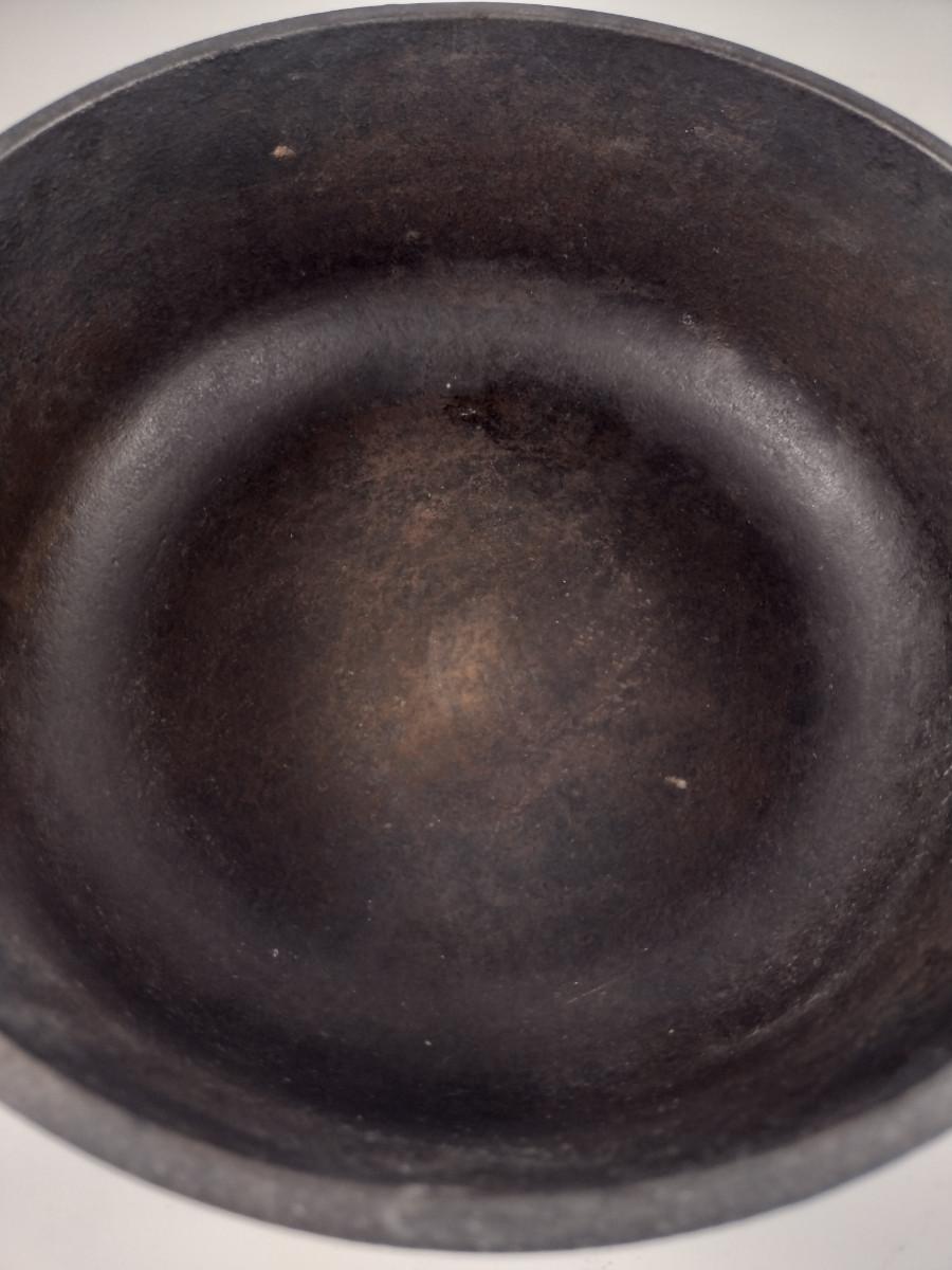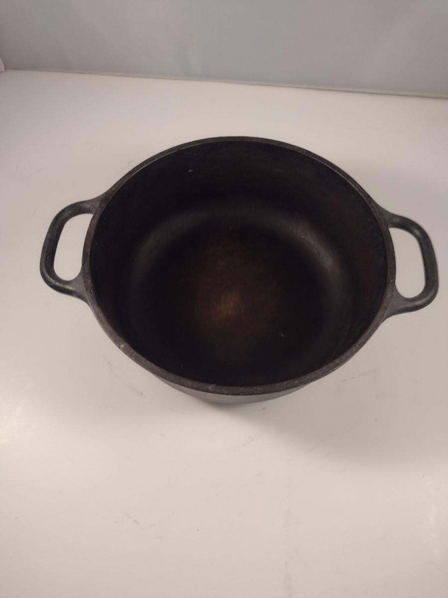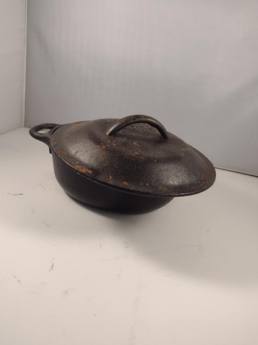Lodge Covered Cast Iron Pot- Approx 8 1/4" in Diameter, 3" Deep. Please see all pictures regarding condition of finish.