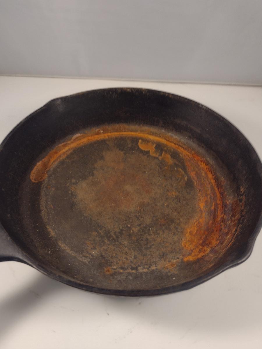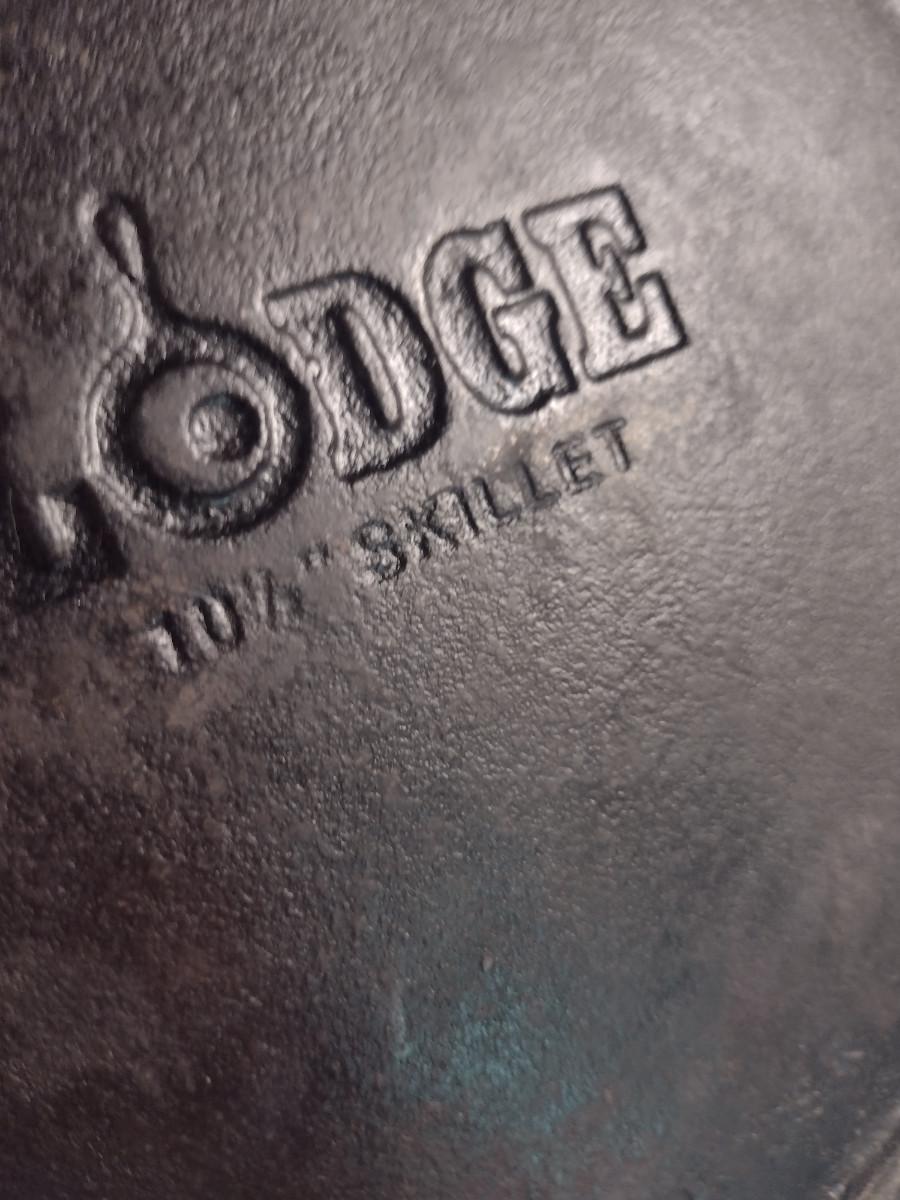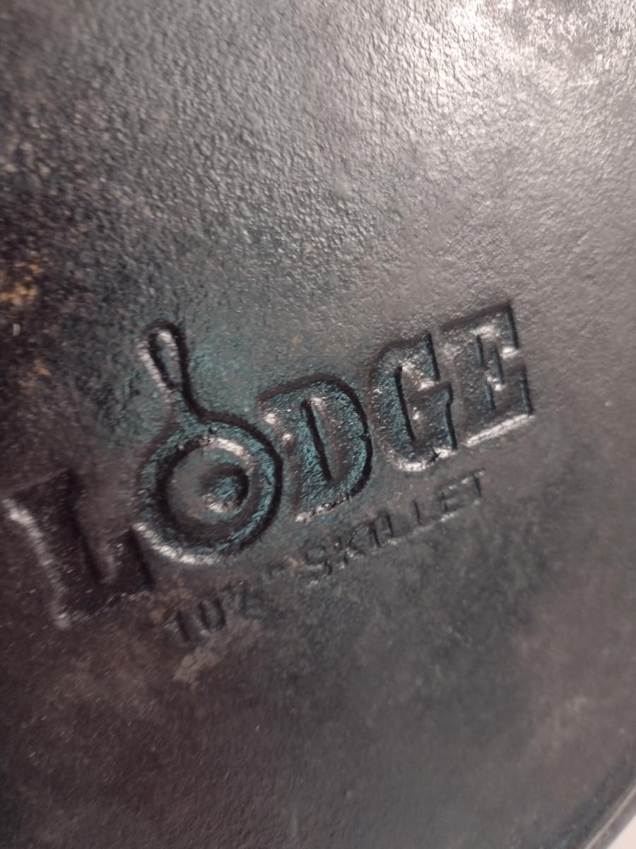 Lodge Cast Iron Skillet- Approx 10 1/2" in Diameter. Please see all pictures regarding condition of finish.